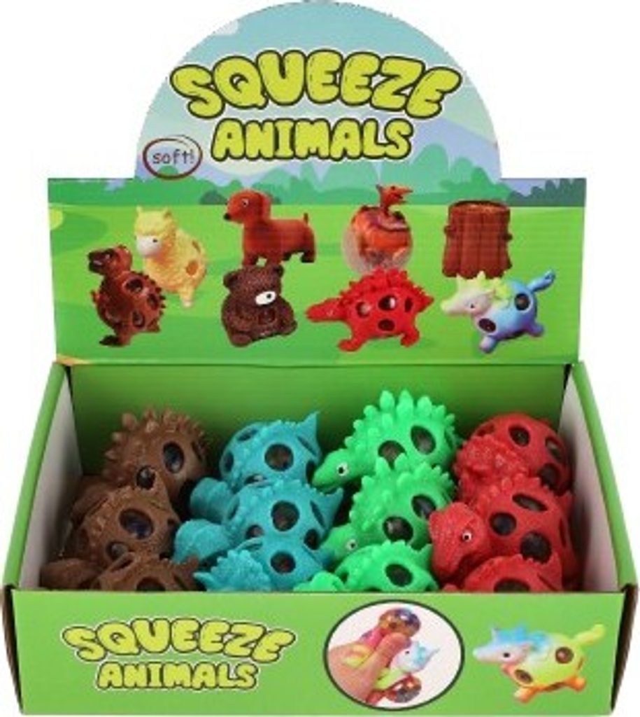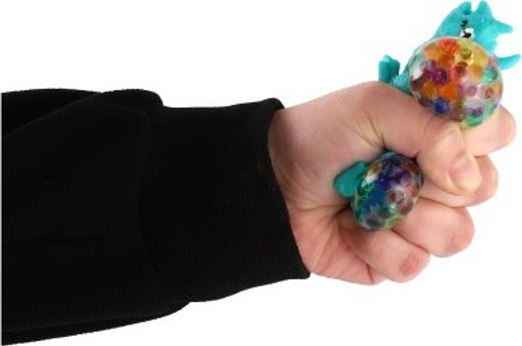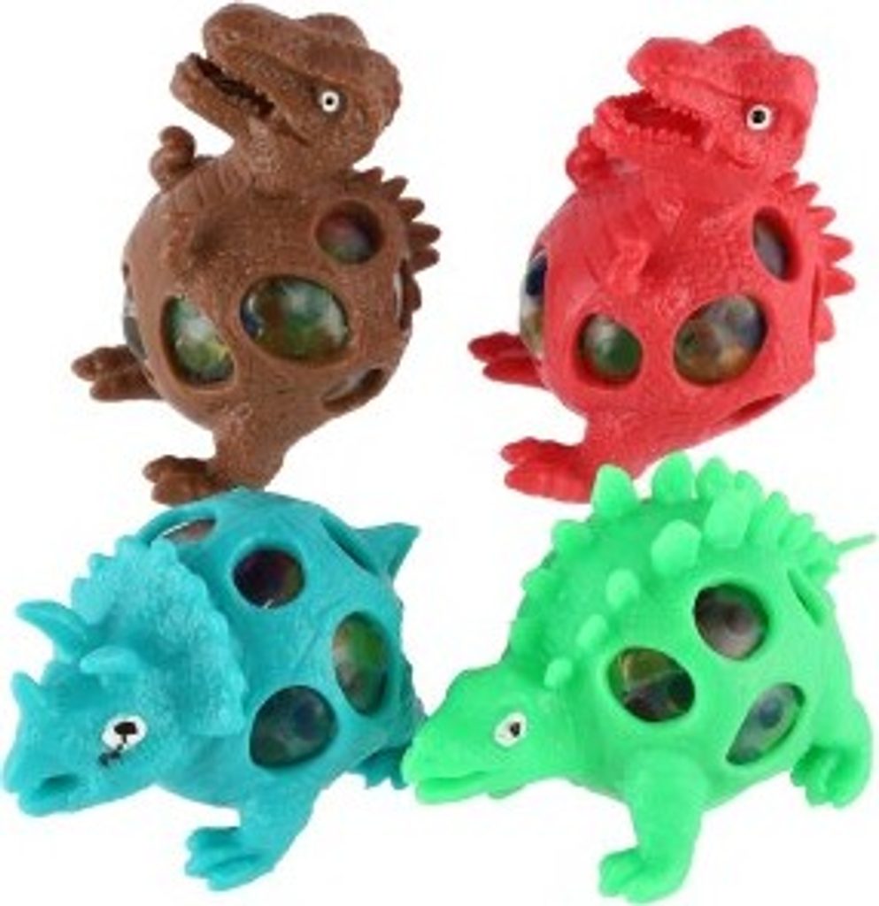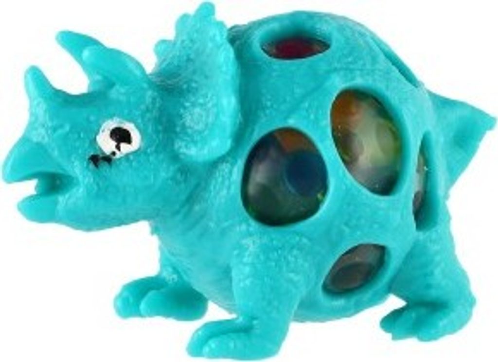 Dinosaura můžete různě mačkat a zaručeně si s ním všude vyhrajete. Po stisknutíu se z otvorů vytlačí barevné kuličky.