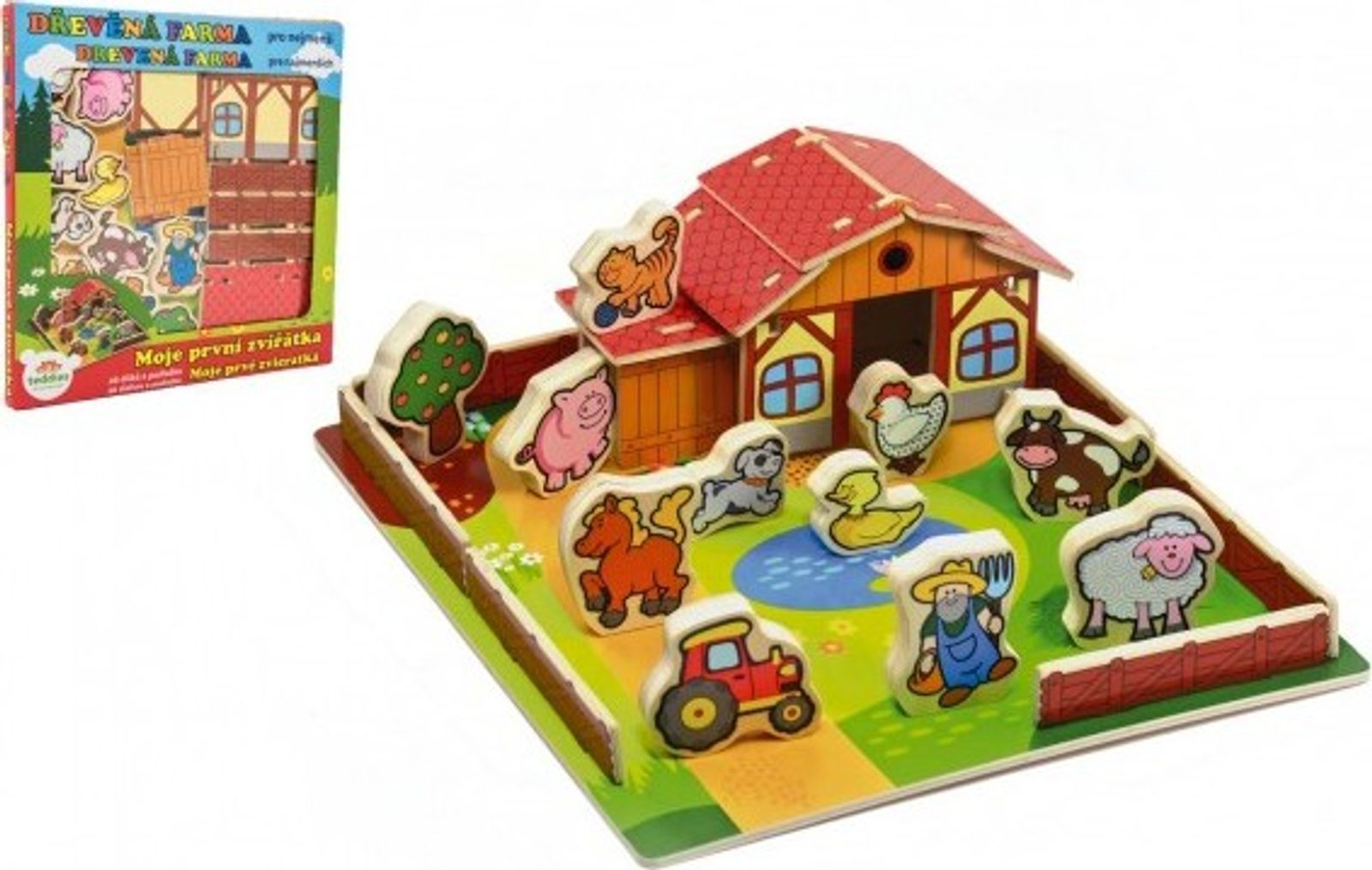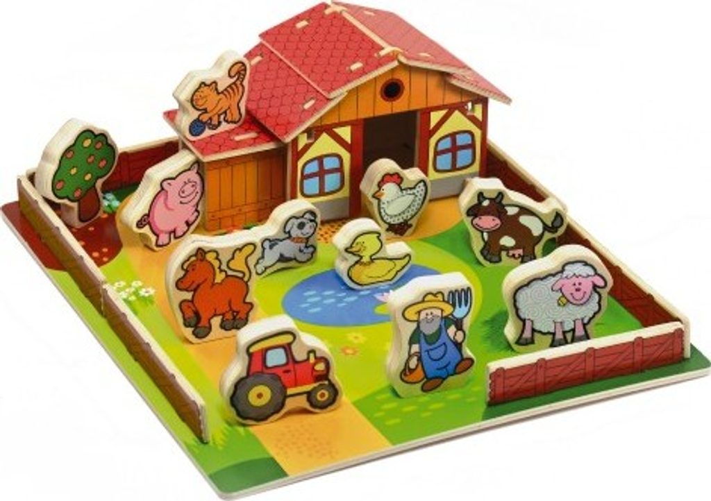 Kvalitní, dřevěná farma, se kterou se děti učí poznávat zvířátka, procvičí motoriku a stimulují logické myšlení. Na dřevěné podložce lze farmu jednoduše sestavit a vytvořit si tak domeček na hraní se spoustou zvířátek.