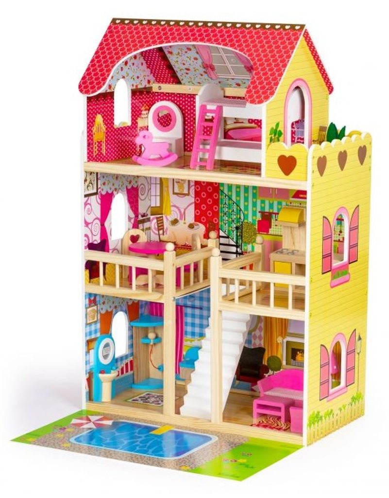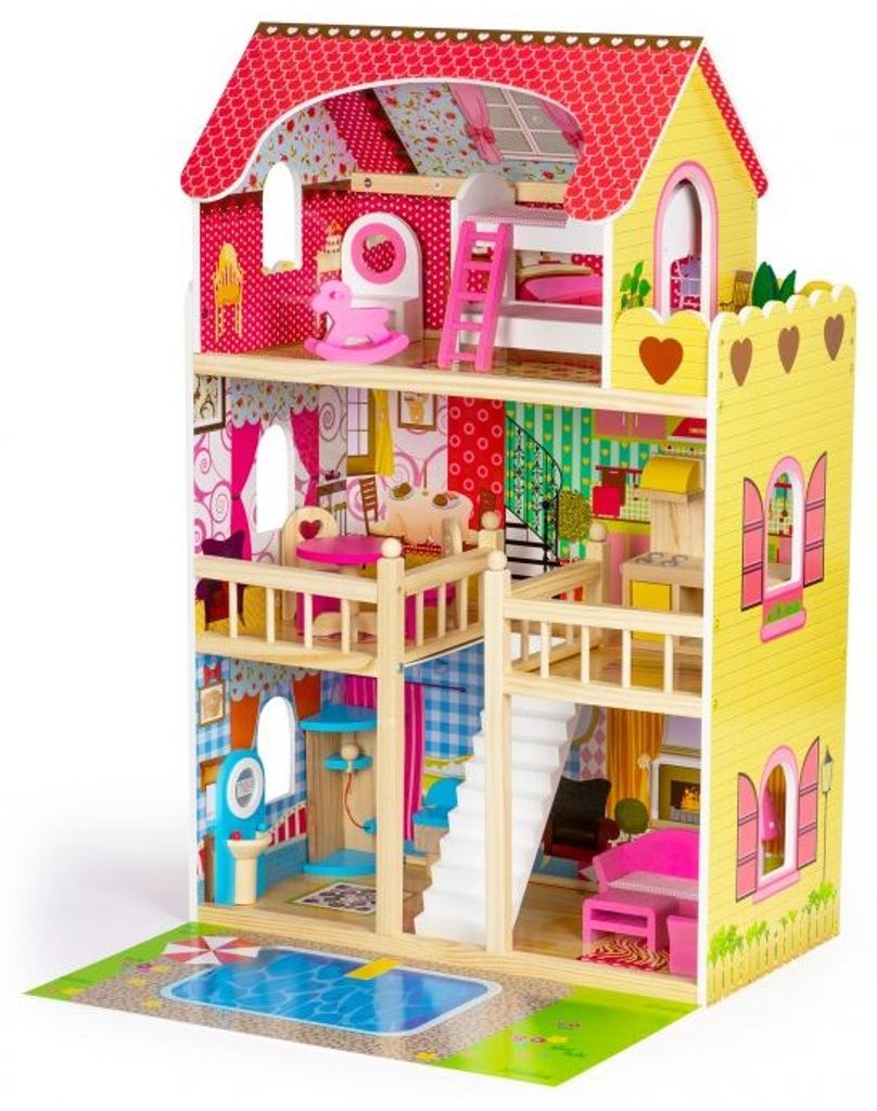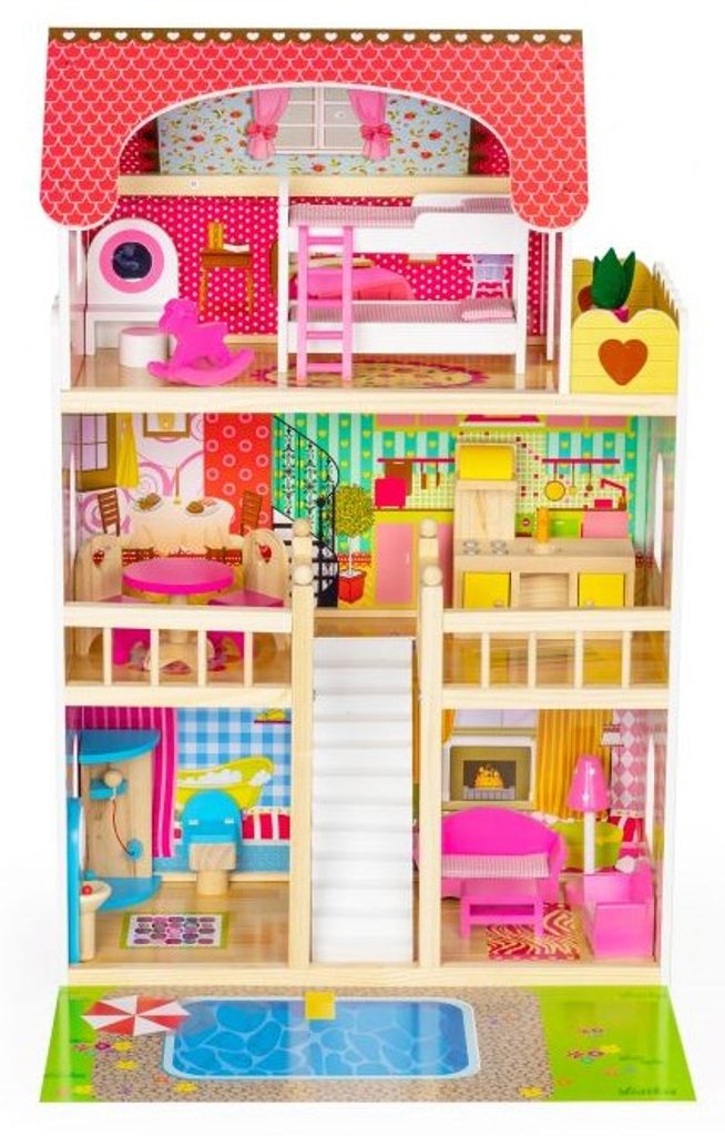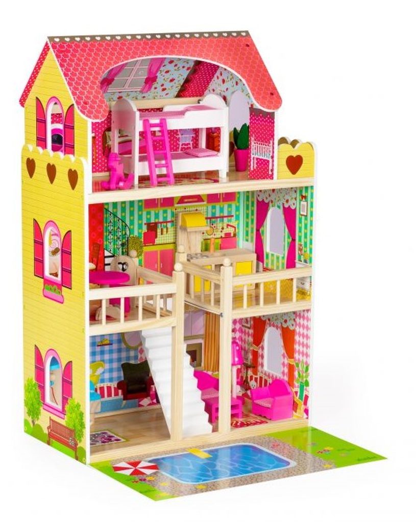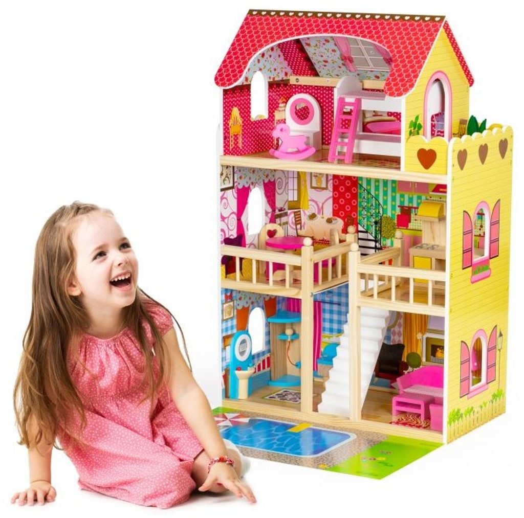 Domeček pro panenky s garáží rezidence Rezidence Florence má 3 nezávislé úrovně, ve kterých jsou celkem 4 pokoje, velká terasa a balkón-vše imituje dokonale skutečný bytový dům. Každý pokoj byl dokončen v jiném stylu, přizpůsoben byl dekor a nábytek charakteru a účelu místnosti. Součástí soupravy je také sada 16 ks dřevěného nábytku, který lze bez omezení přesunovat. Každý kus nábytku je vyroben ručně, s velkou pozorností k detailu a nejvyšší kvalitě provedení, bylo také dbáno na odstranění ostrých hran, které jsou zásadní pro bezpečnost Vašeho dítěte. Domeček pro panenky je nepochybně nejlepší dárek, který můžete dát Vašemu dítěti! Každá dívka sní o takovém domečku! Rezidence bude vypadat dobře nejen v dětském pokoji, ale i v obývacím pokoji, což povzbudí potěšení všech členů domácnosti. Nemusíte se starat o sestavení domu - jasná příručka s obrázky a číslování všech prvků Vám umožní rychle a efektivně sestavit dům. Je vhodný pro všechny panenky typu Barbie do výšky 24 cm. Celý domeček je osvětlený LED páskou.