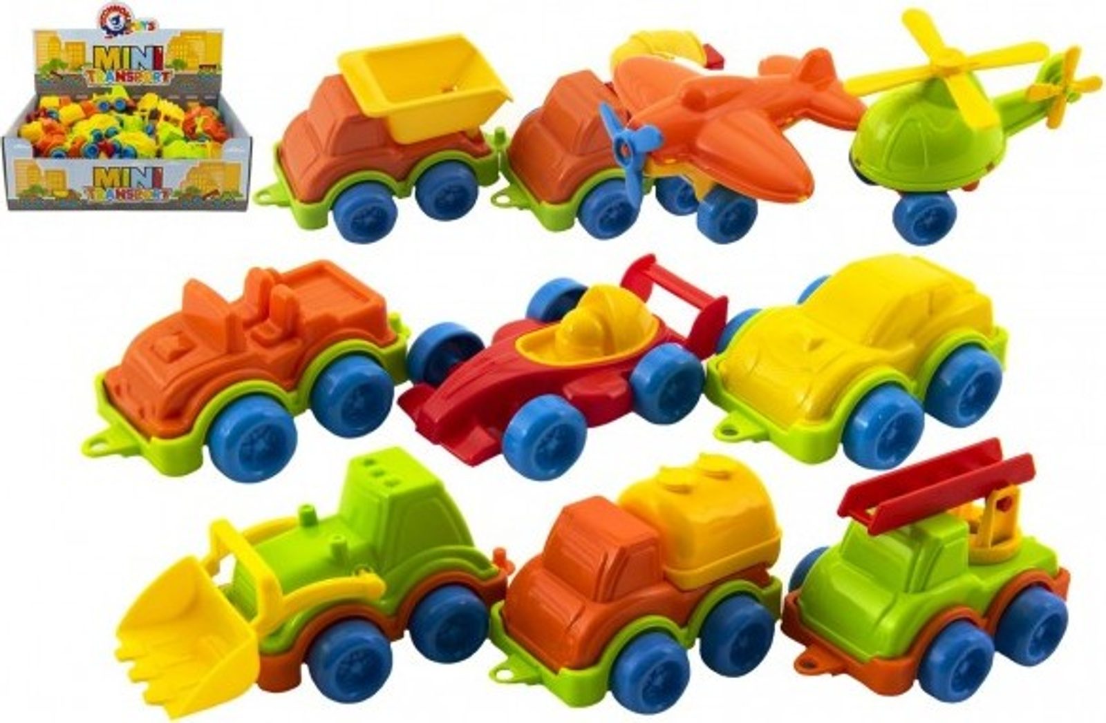 Plastové mini modely autíček, letadýlek a stavebních strojů, které potěší všechny malé milovníky a sběratele autíček. Užijte si spoustu zábavy při jízdě s těmito dopravními prostředky. Hračka se bude líbit všem vášnivým řidičům a milovníkům čtyř kol. Vybrat si můžete z několika druhů dopravních prostředků.