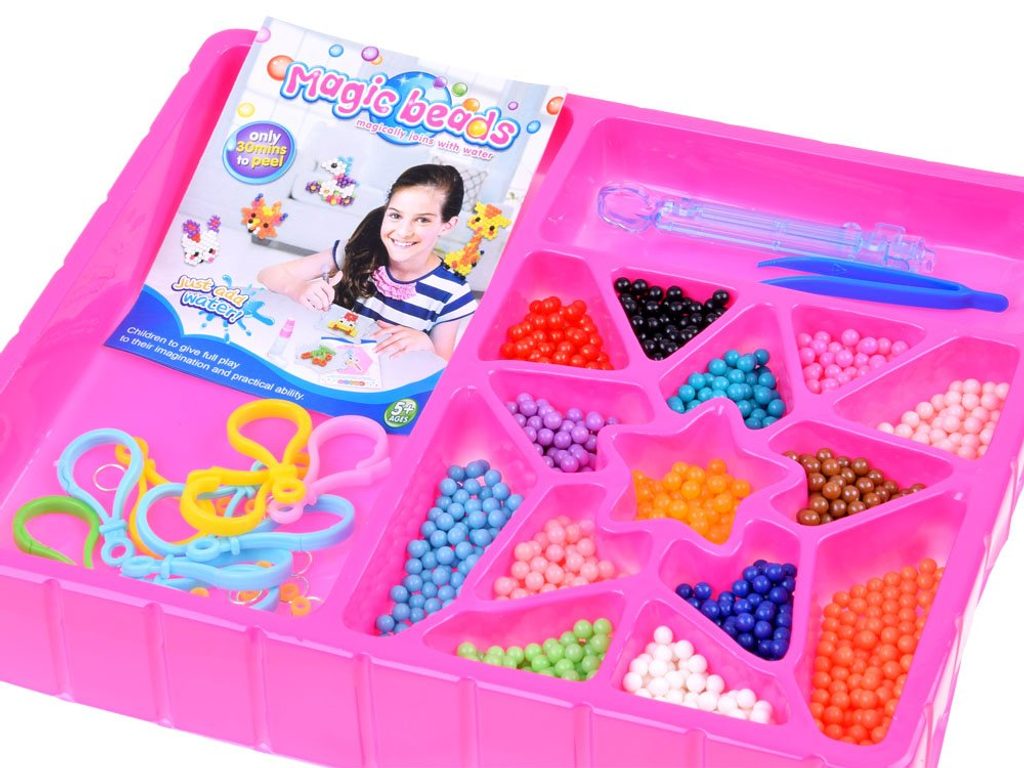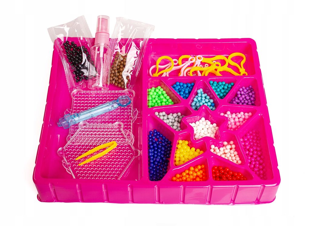 Doris sada barevných vodních korálků Water Beads učí dětí představivost, podporuje kreativitu a manuální dovednosti. Sada obsahuje celkem 1600 ks korálků v 16 barevných odstínech a kompletní příslušenství. Lze z nich vytvářet různé vzory, tvary, klíčenky, 3D postavičky a dokonce bižuterii. Hračka je určena pro děti od 5 let věku.