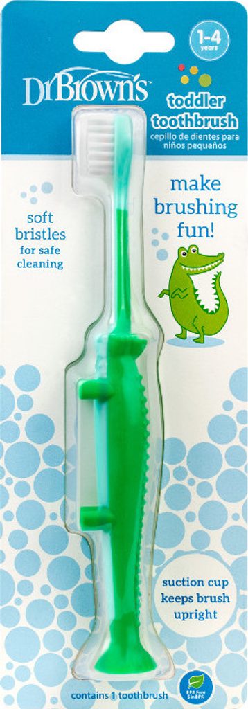 Zubní kartáček pro děti ve věku 1-4 let - ústní hygiena nebyla nikdy jednodušší - čištění zubů je zábava díky dr. Brown's - pomáhá rozvíjet dovednosti potřebné pro samočištění - štětiny jsou měkké pro jemné čištění zubů a dásní batolete. - tvar a materiál pomáhají malíčkům získat a udržet dobrý úchop. - přísavka drží kartáč bezpečně na místě ve svislé poloze. - Bez BPA