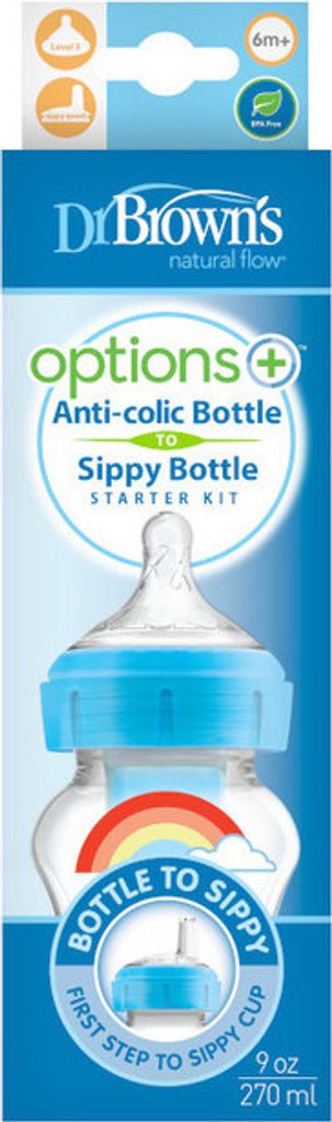 Dr.Brown´s Láhev antikolik Options+ široké hrdlo 2v1 s hubičkou 270ml plast modrá