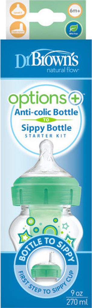 Dr.Brown´s Láhev antikolik Options+ široké hrdlo 2v1 s hubičkou 270ml plast zelená