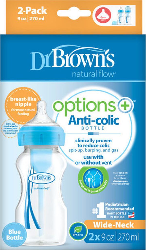 Dr.Brown´s Láhev antikolik Options+ široké hrdlo 2x270ml plast modrá