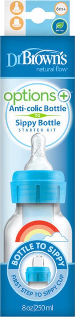 Dr.Brown´s láhev antikolik Options+ úzka 2v1 s hubičkou 250ml, modrá