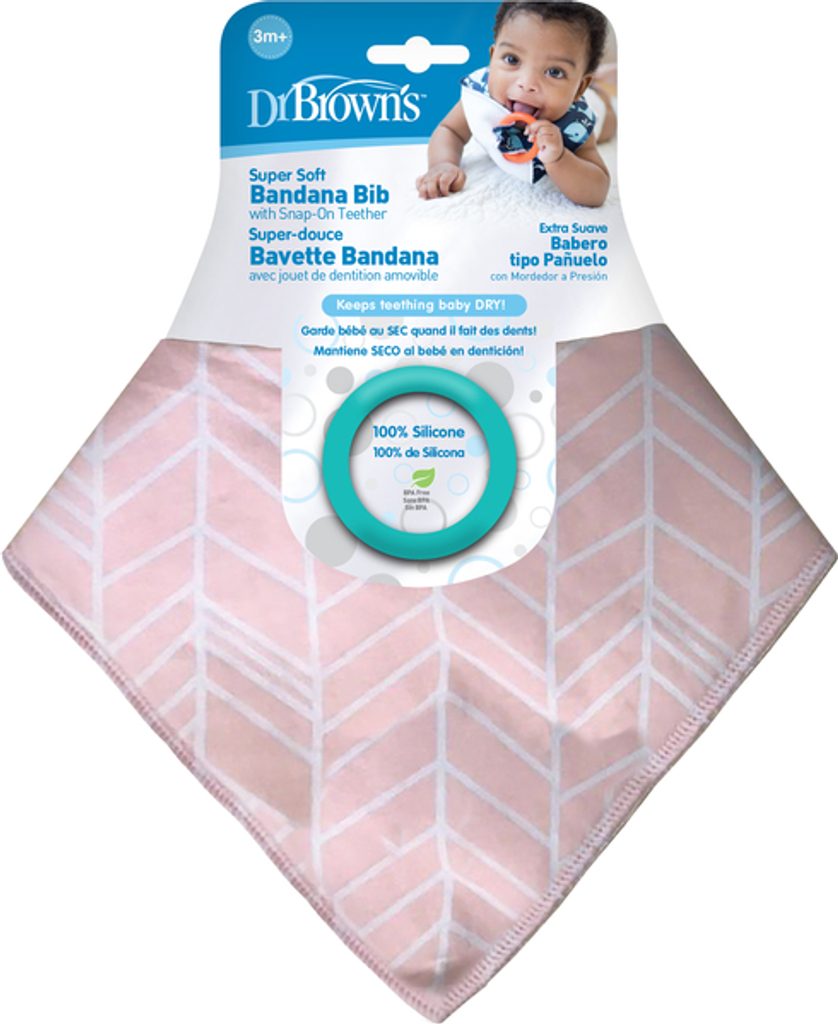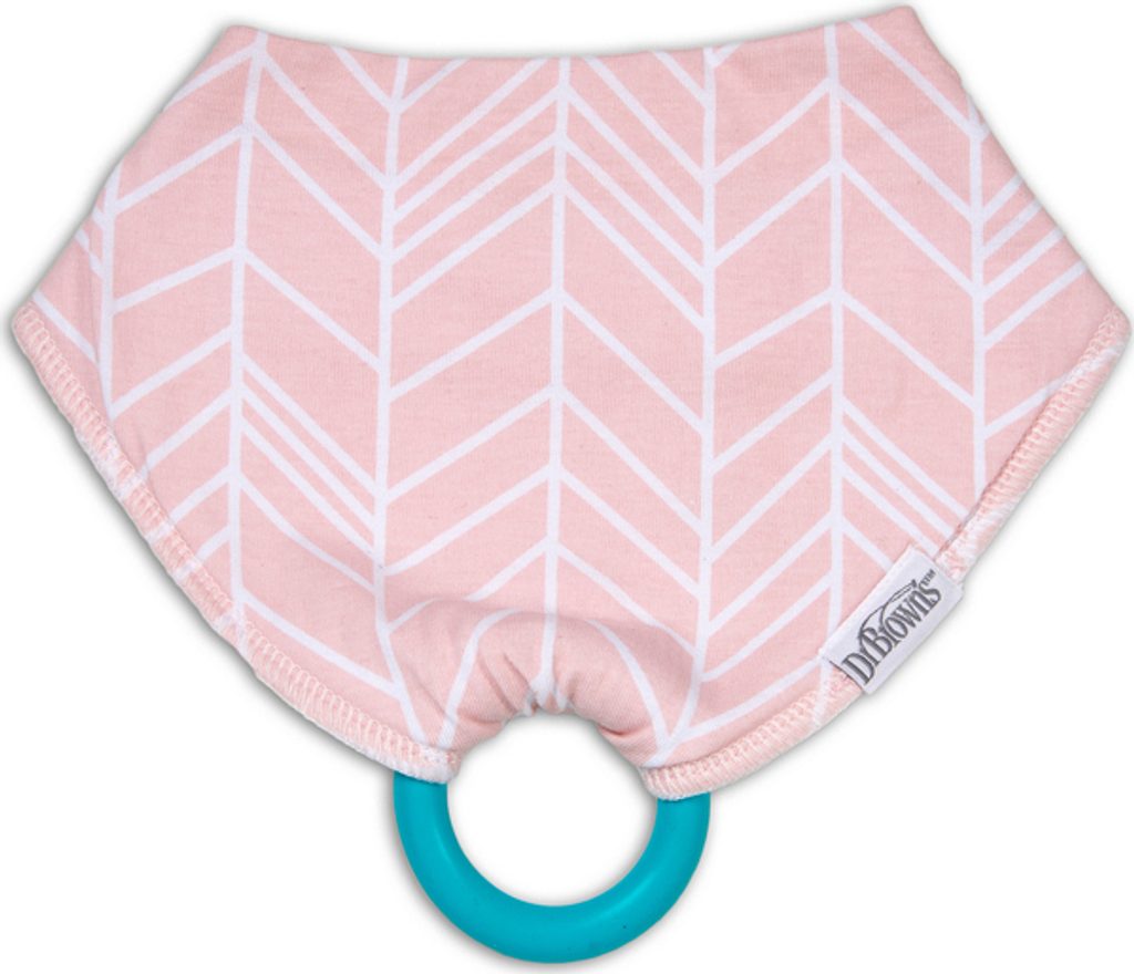 Dr Brown's Bryndáček je produkt, který pomáhá udržet vaše dítě v suchu a pohodlí během prořezávání zoubků a zmírňuje bolavé dásně. Bavlněný šátek podšitý fleecem udrží vaše miminko v suchu. Má nastavitelné patentní knoflíky, které zajistí dokonalé uchycení na krk dítěte. Západky všité do šátku umožňují přidělat přiložené silikonové kousátko nebo jinou oblíbenou hračku nebo jakýkoli dudlík. Kousátko je vyrobeno ze 100% silikonu bez BPA. Určeno pro děti starší 3 měsíců. Lze prát v pračce a kousátko lze sterilizovat.