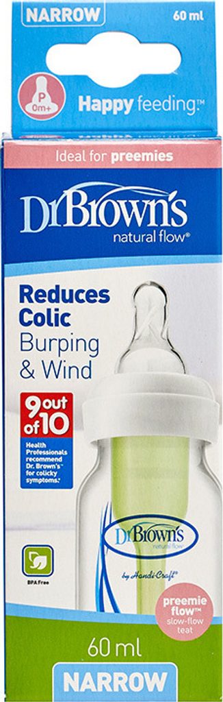 Antikoliková lahvička Dr Brown's Options + je určena pro krmení dítěte od prvních dnů života. Vybaveno savičkou s nejpomalejším průtokem (úroveň P). Kapacita 60 ml je ideální pro dříve narozená miminka.
