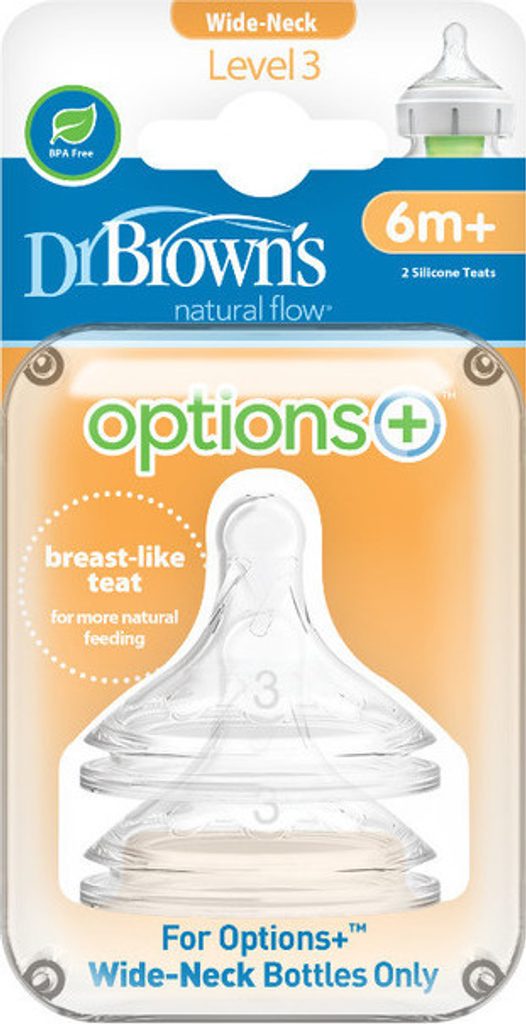 Dudlík Dr Brown's Level 3 pro konzistentní, přirozený průtok. Má tvar mateřského prsu. Vyrobeno z nejkvalitnějšího měkkého silikonu. V kombinaci s antikolikovým systémem způsobuje beztlaké krmení, které snižuje výskyt koliky, říhání a plynatosti.