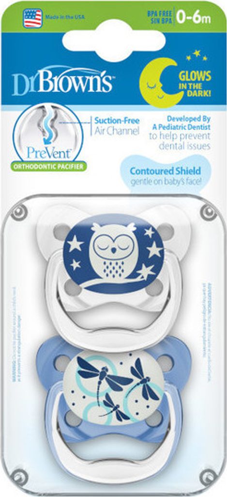 Dr Brown's Ortodontický dudlík Prevent svítící, 2ks, 0-6m, modrý