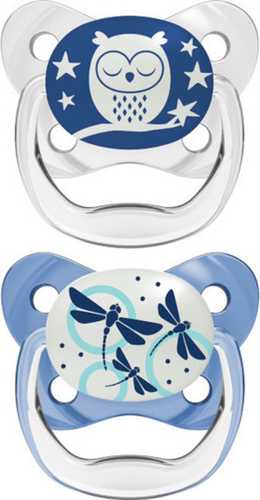 Dudlíky Glow in the dark je kolekce pro rodiče, kteří hledají vysokou kvalitu a pohodlí pro své dítě. Tvarovaný štít ponechává dostatek prostoru pro nos a tváře dítěte.