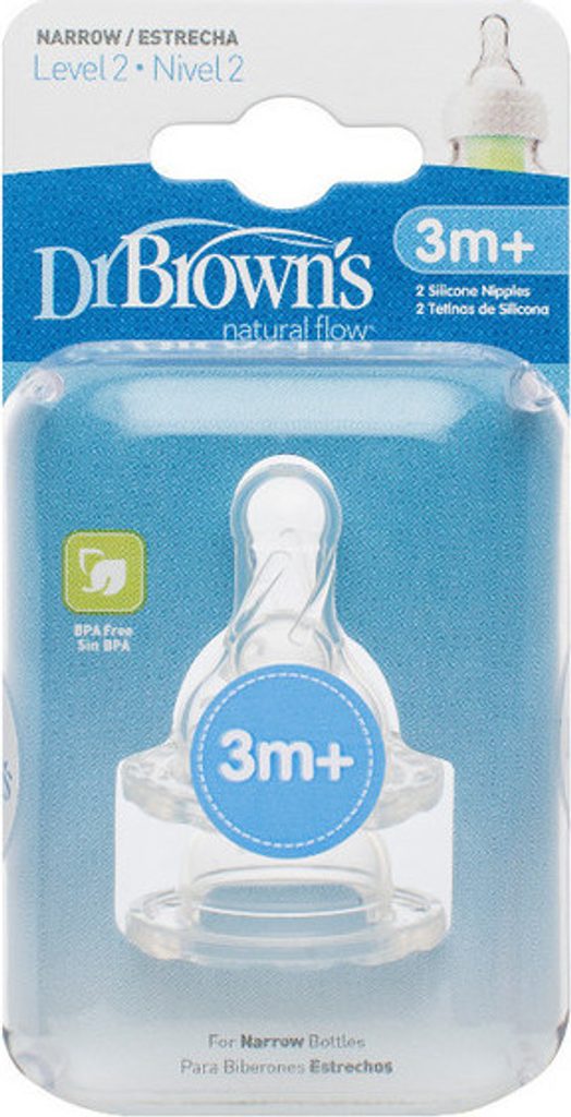 Dudlík Dr Brown's Level 2 poskytuje konzistentní, přirozený, pomalý průtok. Má tvar mateřského prsu. Vyrobeno z nejkvalitnějšího super měkkého silikonu. V kombinaci s antikolikovým systémem způsobuje beztlaké krmení, které snižuje výskyt koliky, říhání a plynatosti. Dudlík se hodí pro všechny tenké lahvičky Dr. Browna. Balení obsahuje 2 savičky. Lze mýt v myčce na horní polici. Určeno pro děti od 3-6 měsíců.
