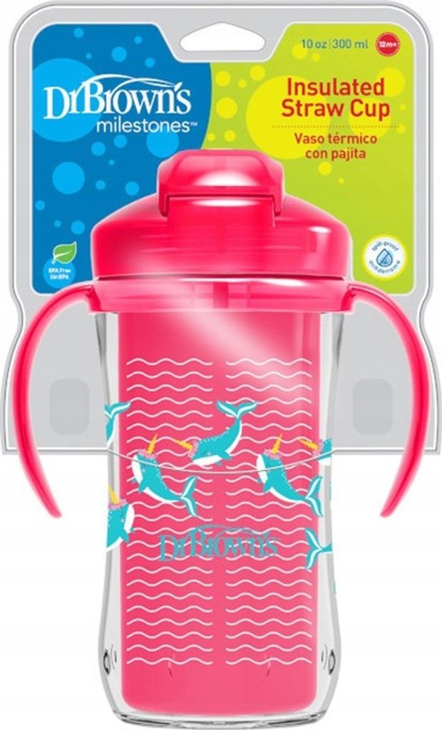Dr.Browns Termální hrneček se slámkou Straw Cup, 300ml, růžový