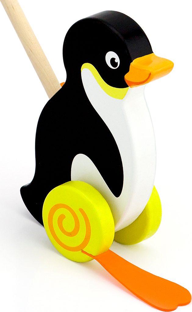 Dřevěná hračka na tyči Viga Tučňák je skvělou alternativou tahacích hraček pro děti. Perfektní edukační hračka. Ideální na společné procházky a hraní doma. Gumové prvky připojené na kola vtipným způsobem napodobují chůzi zvířat. Hračka pomáhá zlepšit manuální zručnost a obratnost, učí dítě rozpoznat tvary a barvy, zapojuje a rozvíjí smysl pro pozorování. Hračka je vyrobena z lakovaného dřeva. Naší prioritou je bezpečnost a kvalita našich výrobků, a proto barvy použité na hračkách nejsou toxické a splňují bezpečnostní standardy (EN71 a ASTM). Rozměry hračky: dxvxš 15x8,3x5,6 cm. Určeno pro děti od 2 let.