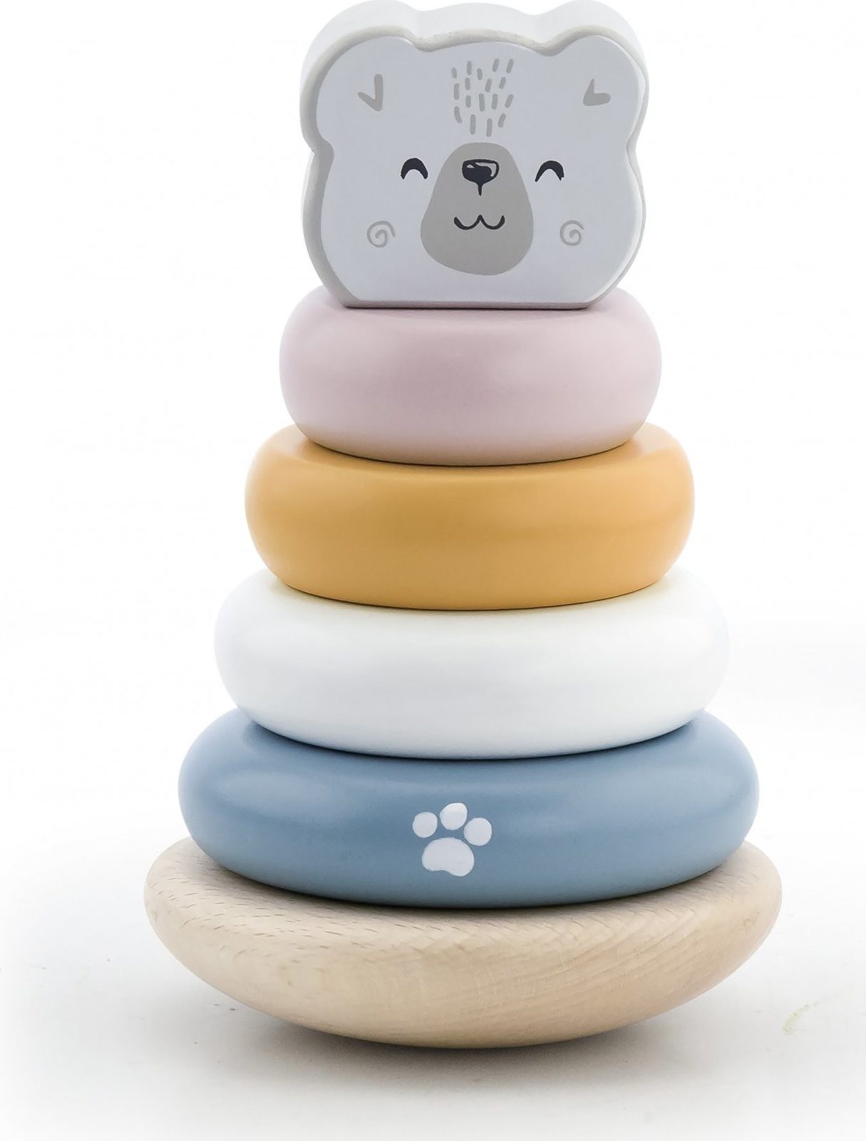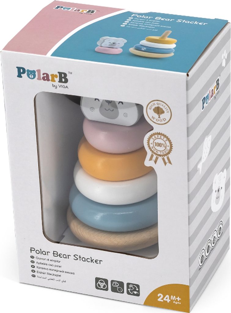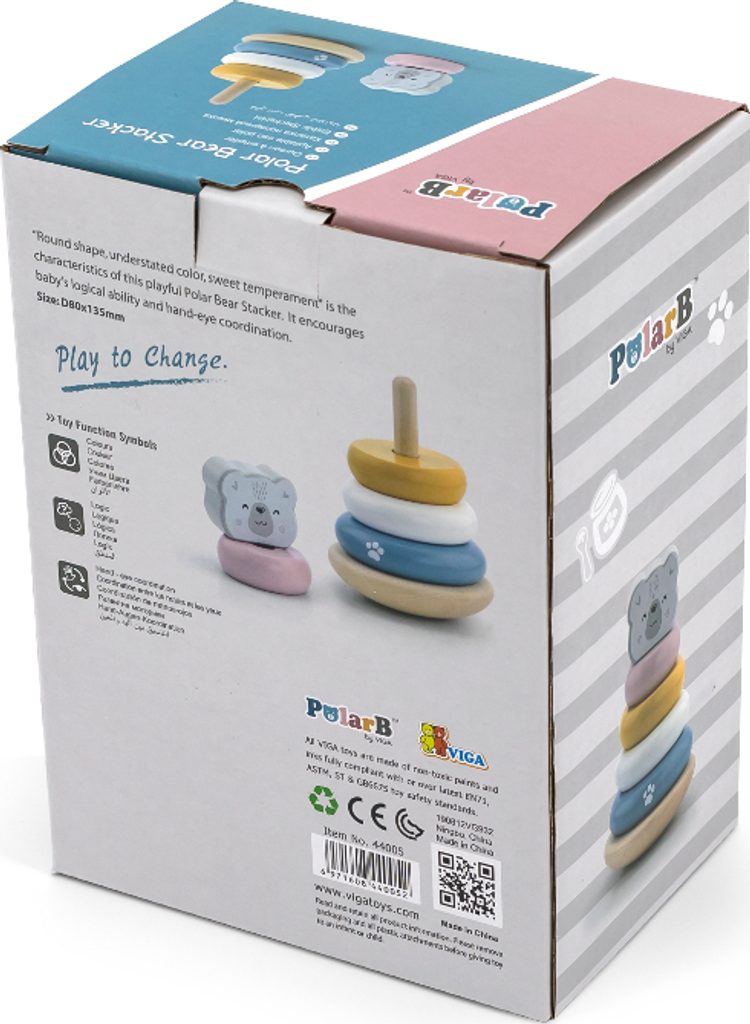 Vzdělávací pyramida od společnosti Viga je klasická hračka pro nejmenší, která vašemu dítěti poskytne zábavnou, zajímavou a kreativní hru. Sada v pastelových barvách obsahuje 6 diskových kostek různých velikostí, včetně jedné ve tvaru medvědí hlavy. V základně je kolík, na který se dílky nasazují. Tato hračka je ideální pro batolata, která začínají stavět věže z kostek. Pyramida podporuje rozvoj koordinace ruka-oko, logického myšlení a navíc podporuje učení rozpoznávání barev. Zde je třeba zdůraznit vzdělávací hodnotu pyramidy s medvědem. Celá řada hraček POLAR BEAR byla společností VIGA vytvořena tak, aby splňovala očekávání rodičů a dětí v oblasti zlepšování procesu jejich rozvoje prostřednictvím hry. Celá řada je vyrobena z bukového dřeva a natřena netoxickými barvami v "polárních" barvách, které potěší každého uživatele a poskytnou mu spoustu zábavy. Naší prioritou je bezpečnost dětí a nejvyšší kvalita hraček, proto dbáme na to, aby barvy, které používáme k natírání našich hraček, byly netoxické a splňovaly bezpečnostní normy (EN71 a ASTM). Tato hračka je vhodná pro děti starší 24M+.