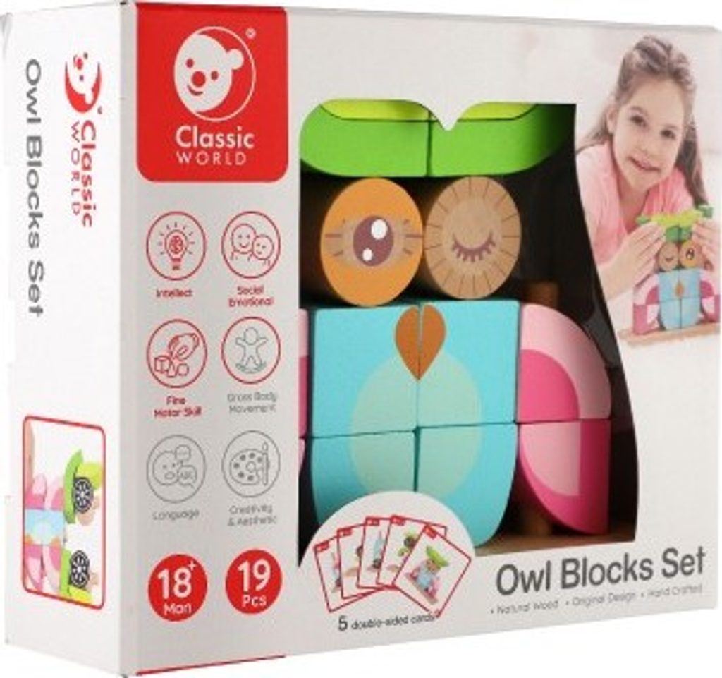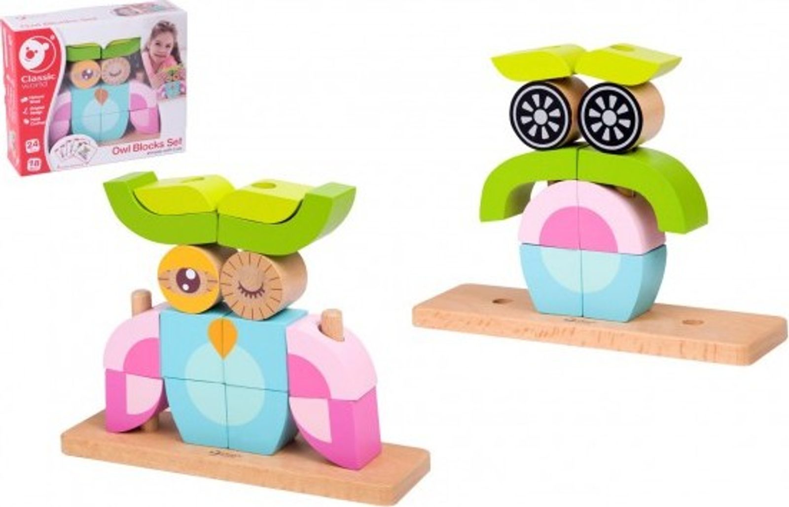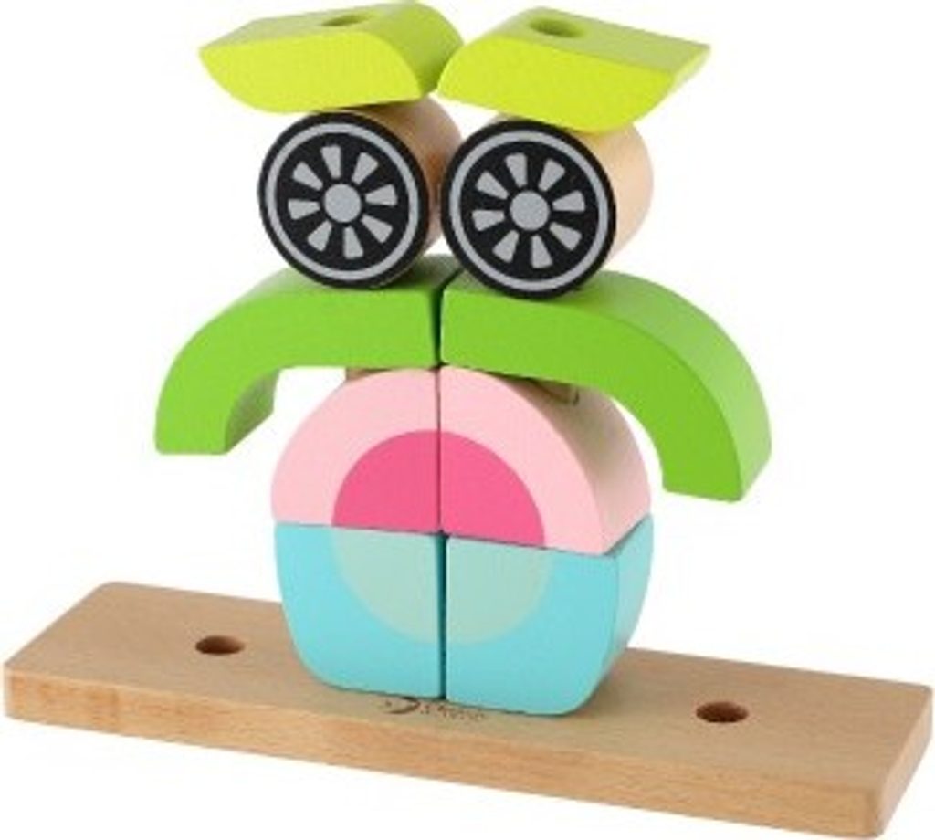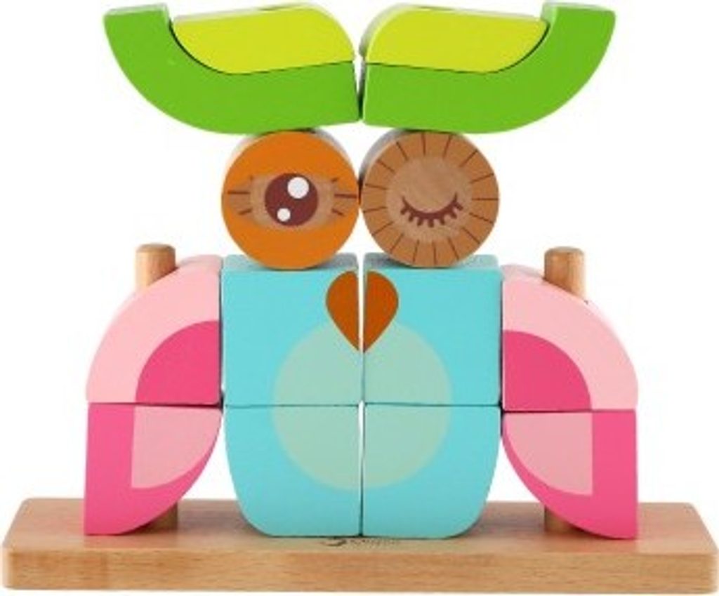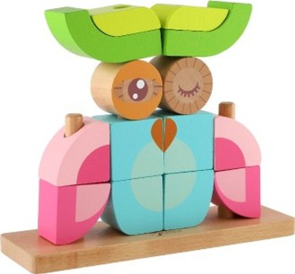 Skládanka sova obsahuje 19 dřevěných dílků (14 kostek, podložka, 4 tyčky), které lze různě stavět na podložku s tyčkami. Děti si tak mohou postavit různé předměty i zvířata. V sadě najdete 5 oboustraných předloh pro skládání. Rozměr krabice: 23 x 19 x 6,5 cm Vhodné pro děti od 18 měsíců
