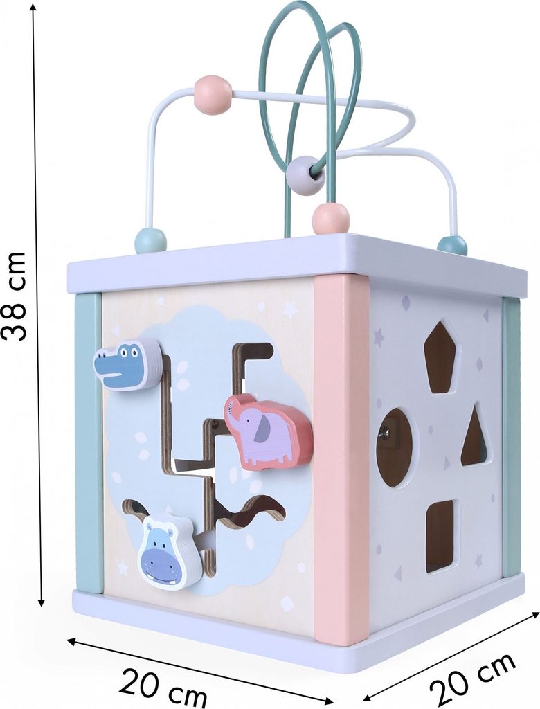 Každý rodič chce, aby se jeho dítě vyvíjelo přiměřeným a vyváženým způsobem. Vzdělávací hračka od ECOTOYS umožní vašemu dítěti rozvíjet se na mnoha úrovních, to vše díky své struktuře, ve které má každá stěna zcela jinou funkčnost a charakter.