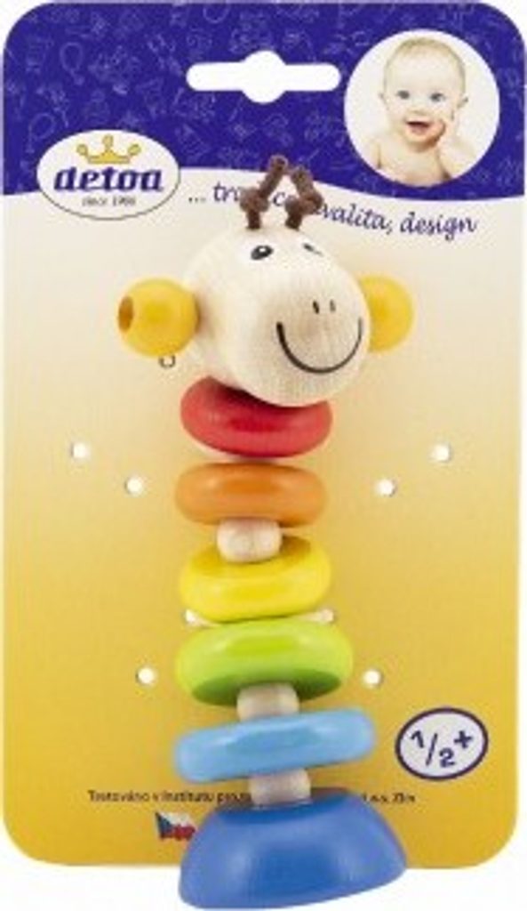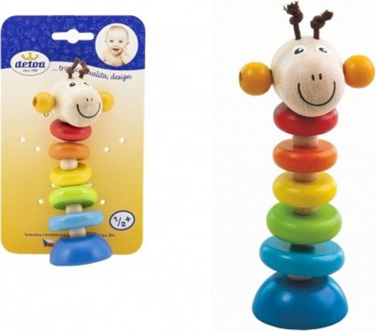 Dřevěná hračka s motivem žirafy. Vhodná k procvičování motoriky rukou a je určena dětem již od 6ti měsíců.