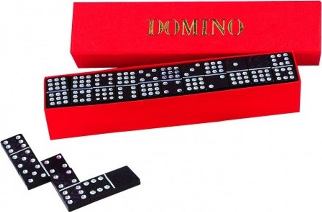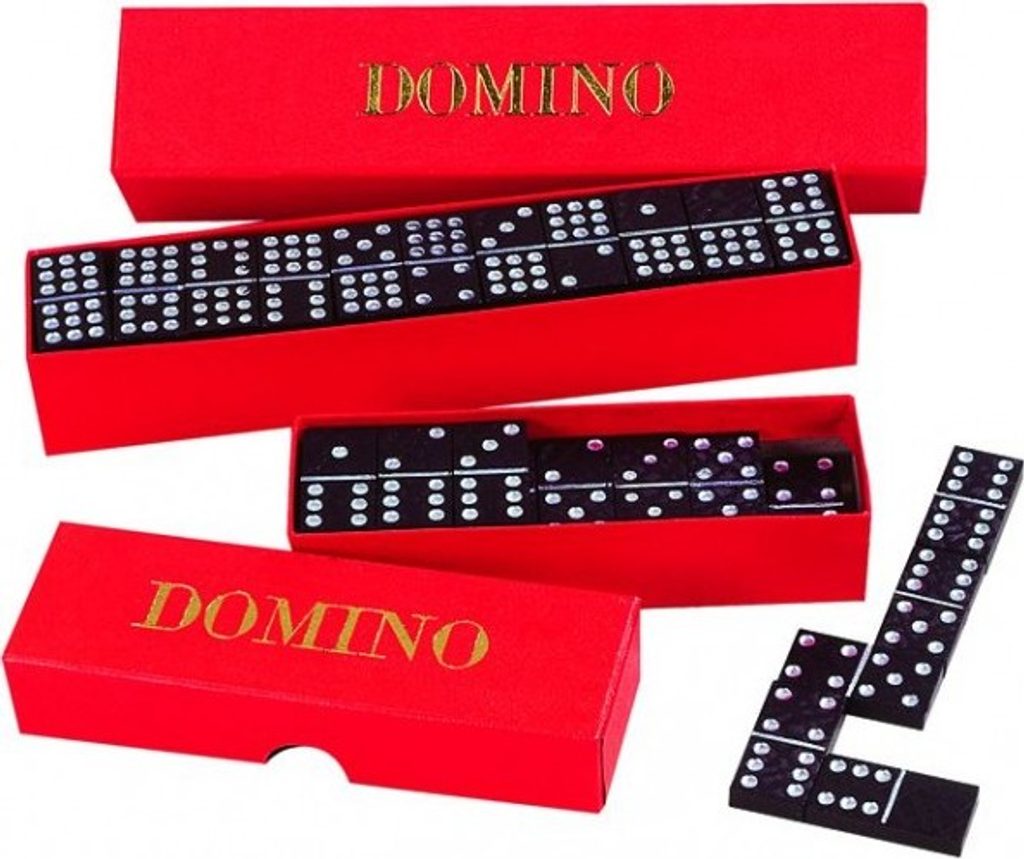 Stolní hra se sadou dominových kamenů o rozměrech 20x40 mm v krabičce. Kameny mají na sobě kombinaci dvou čísel.