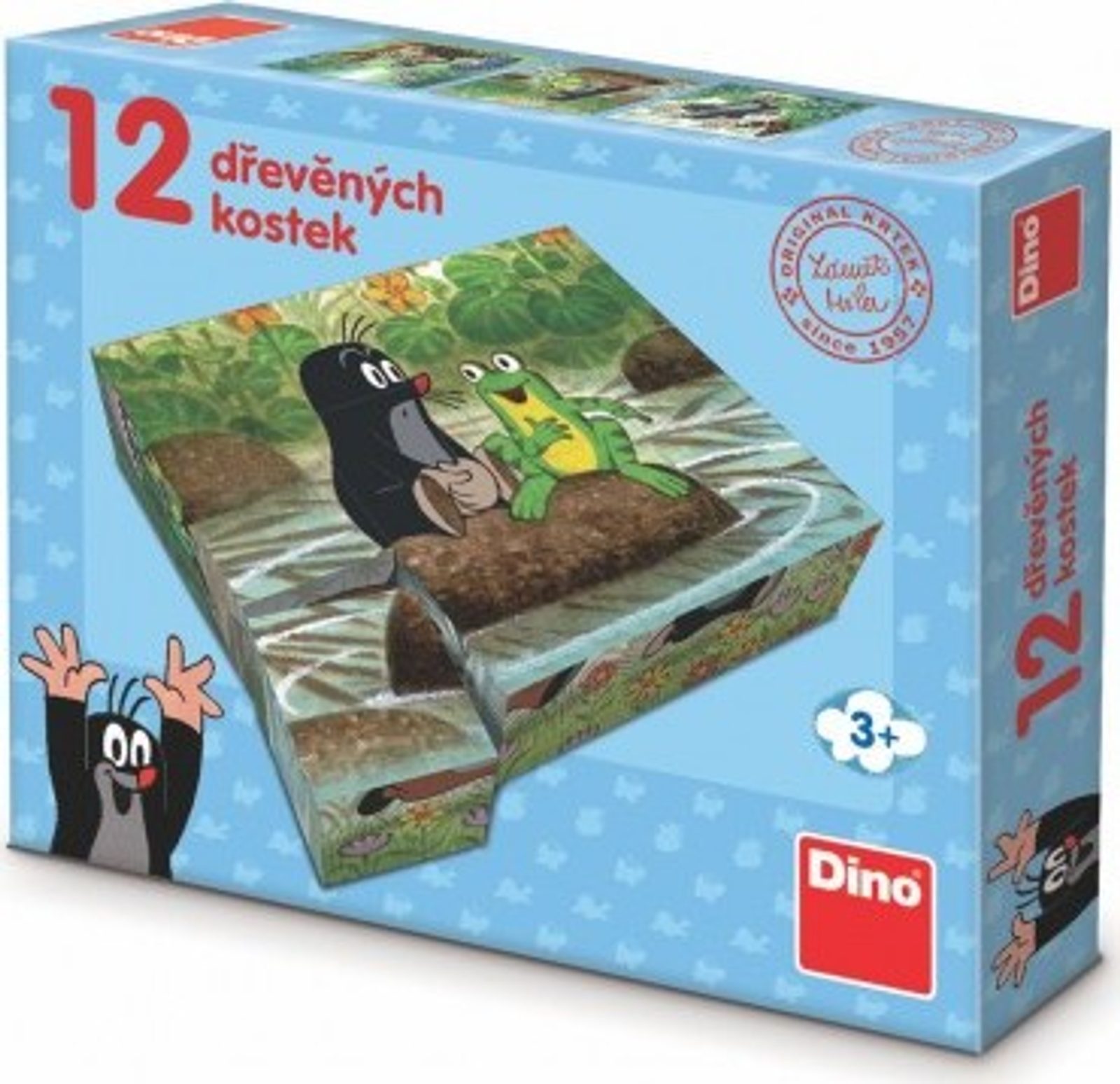 Děti si jistě zamilují tyto dřevěné kostky s oblíbeným Krtečkem. Sestavte si obrazy z 12ti dřevěných kostek, kdy každá stran kostičky vypráví jinou Krtečkovu příhodu, zaleží jen na Vás, jakou budete zrovna skládat. Skládání obrázků si ratolesti rozvíjí motoriku, představivost a tvůrčí myšlení.