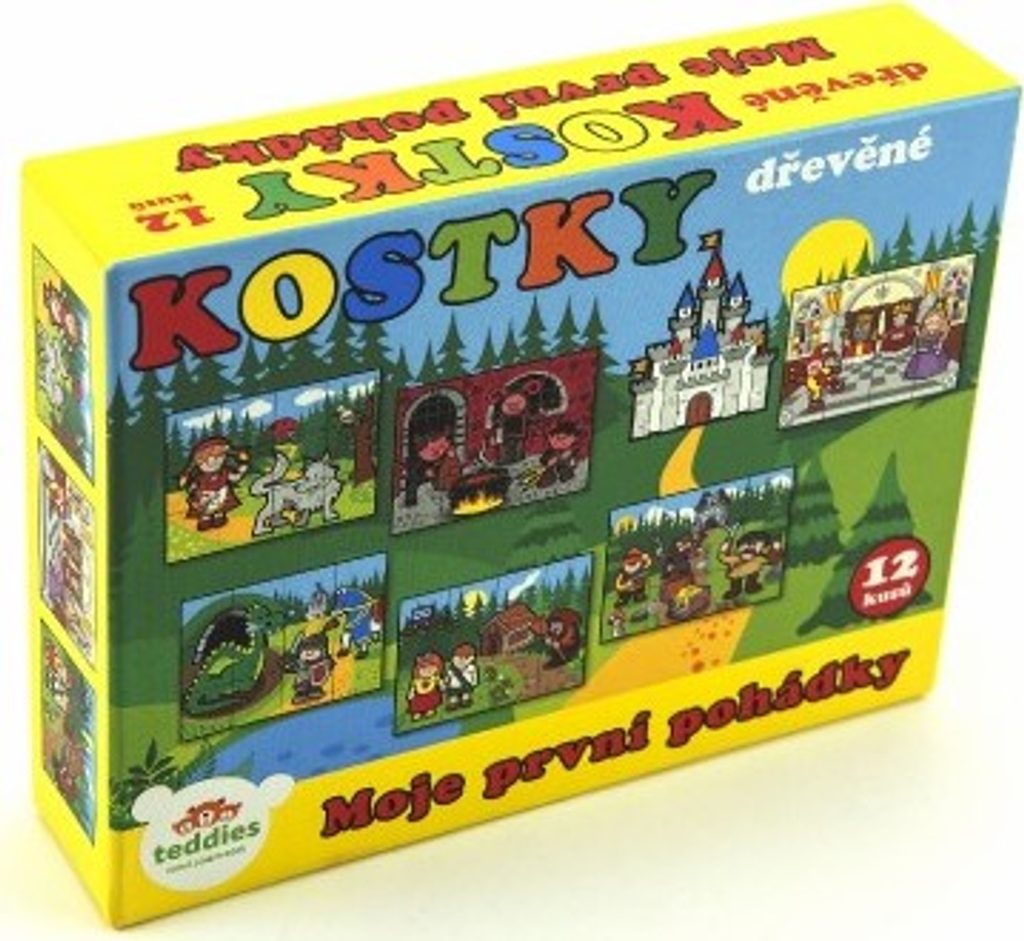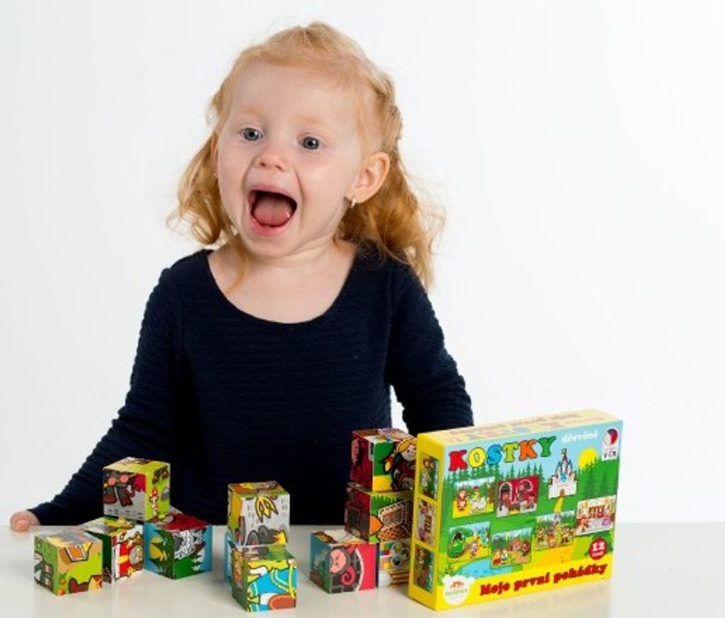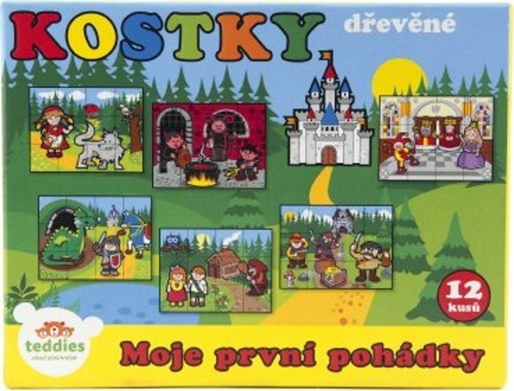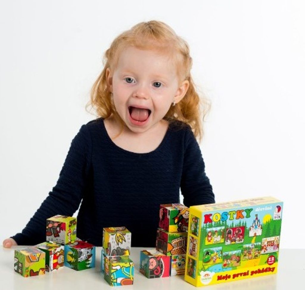 Dřevěné kostky s barevnými obrázky na motivy klasických pohádek jsou výbornou volbou pro nejmenší.