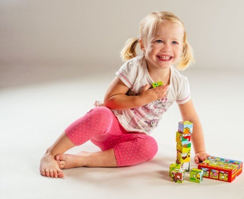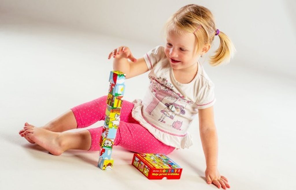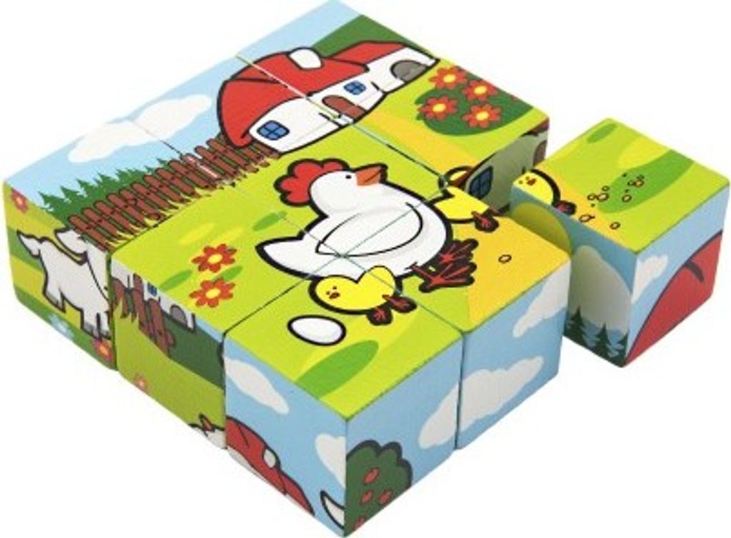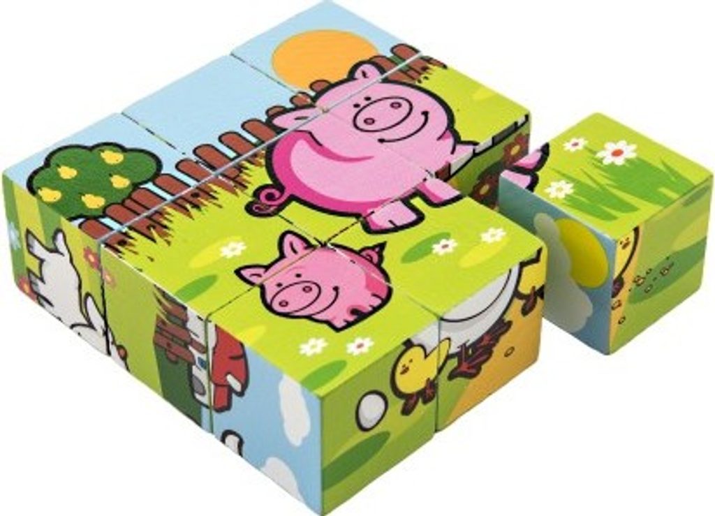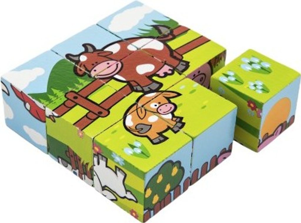 Dřevěné kostky s barevnými obrázky domácích zvířátek jsou výborná volba pro nejmenší.