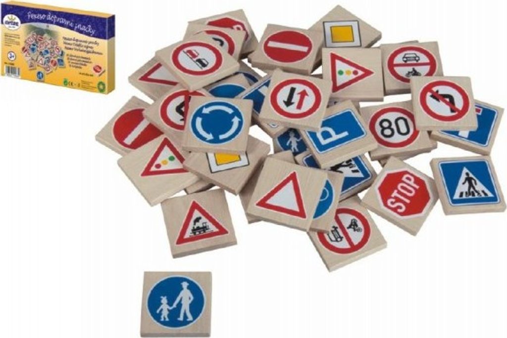 Pexeso z dřevěných kamenů s potiskem dopravních značek. Hra pomáhá při procvičení soustředění a paměti. Děti se zábavnou formou naučí základní dopravní značky. Výrobek splňuje požadavkyEU na bezpečnost hraček.