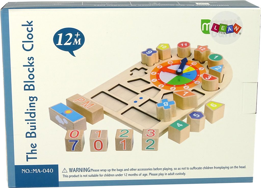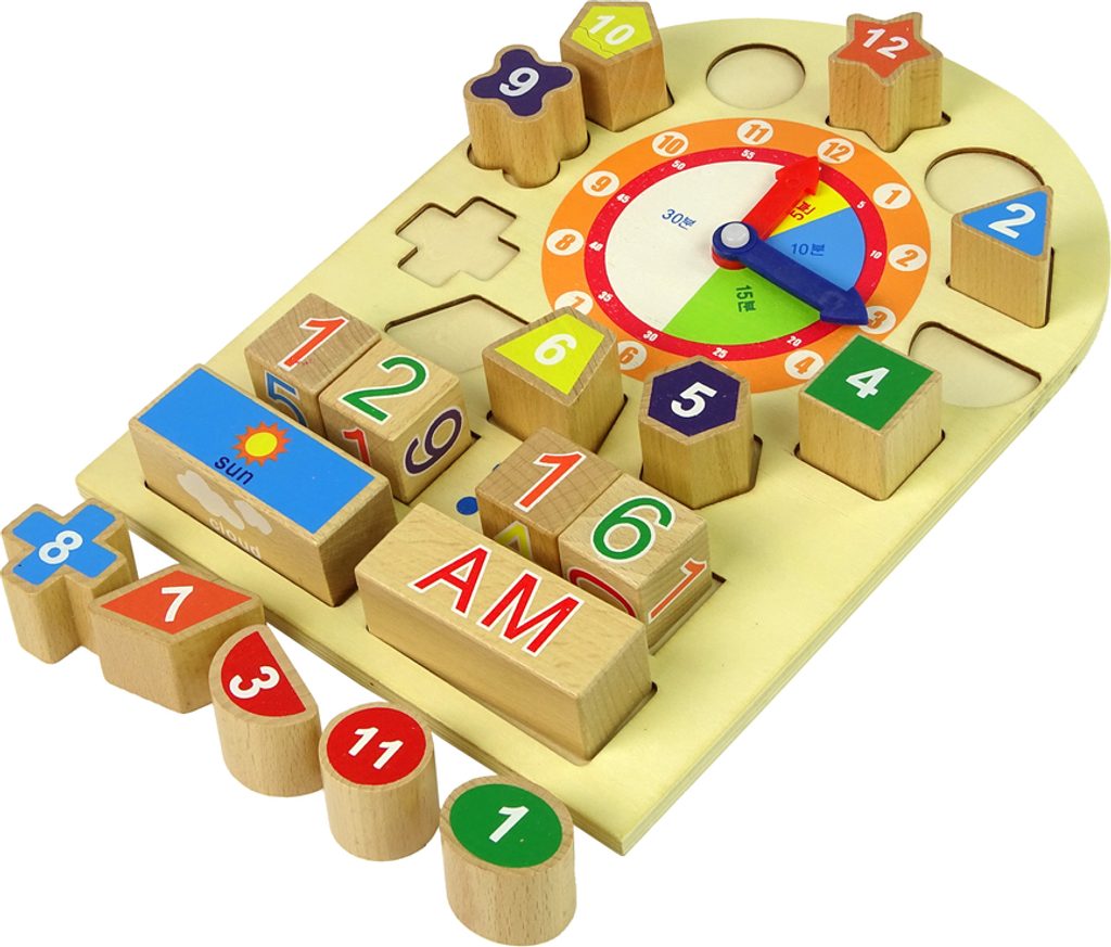 Díky kostkám se dítě bude moci učit tvary, čísla a barvy. Sada obsahuje 12 kostek s čísly označujícími hodiny, každý z nich pasuje pouze do jednoho z otvorů ve vzdělávací kostce. Dítě bude muset najít stejné tvary a umístit do nich všechny kostky jako třídič. Hodiny naučí vaše batole, jak rozpoznat čas. Po přečtení níže uvedených informací může vytvořit hodinu pomocí 4 číselných bloků. Dva podlouhlé bloky ukazují denní dobu a počasí. Malé vzdělávací hodiny pomohou vašemu dítěti učit se.