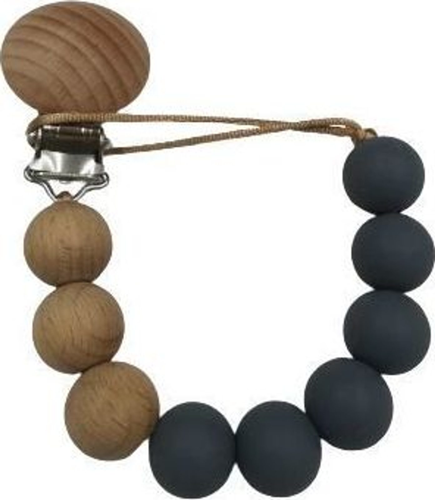 Dřevěný přívěsek na dudlík - přírodní, šedá, korálky