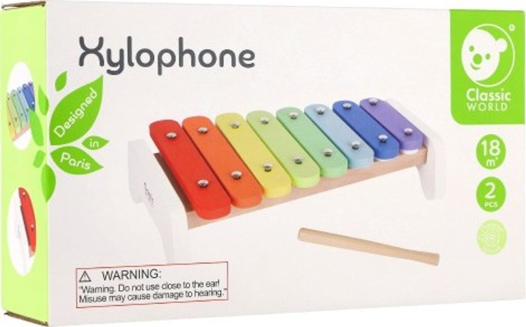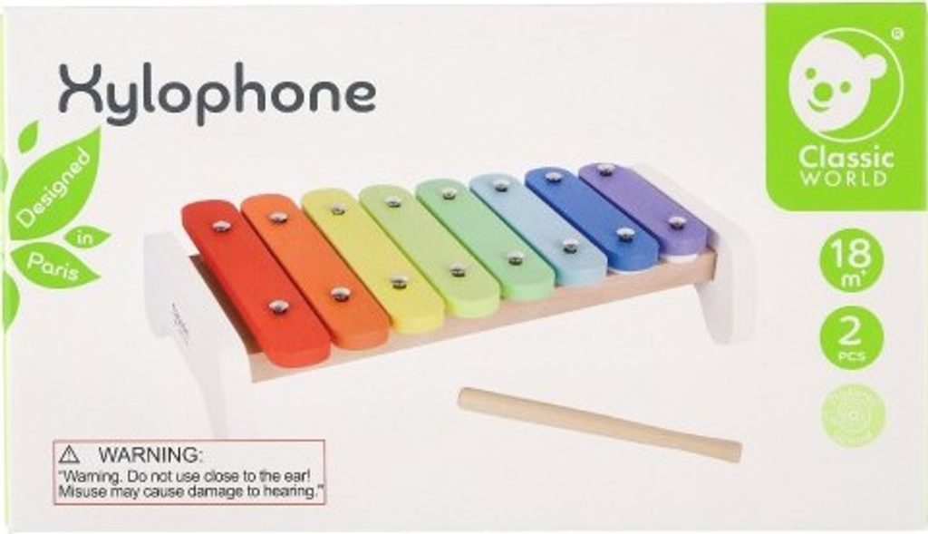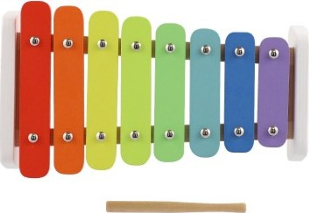 Hudební nástroje děti baví. Podporuje smysly, hudební sluch a u starších dětí často vedou k vlastnímu tvoření skladeb či nápodobě jiných. Veďte děti k hudbě již od malička. Barevný xylofon vám k tomu pomůže. Sada obsahuje xylofon a paličky. Má 8 různých tónů, které jsou odlišeny barvami – pro děti snadno rozpoznatelné. Barvy jsou zdravotně nezávadné.