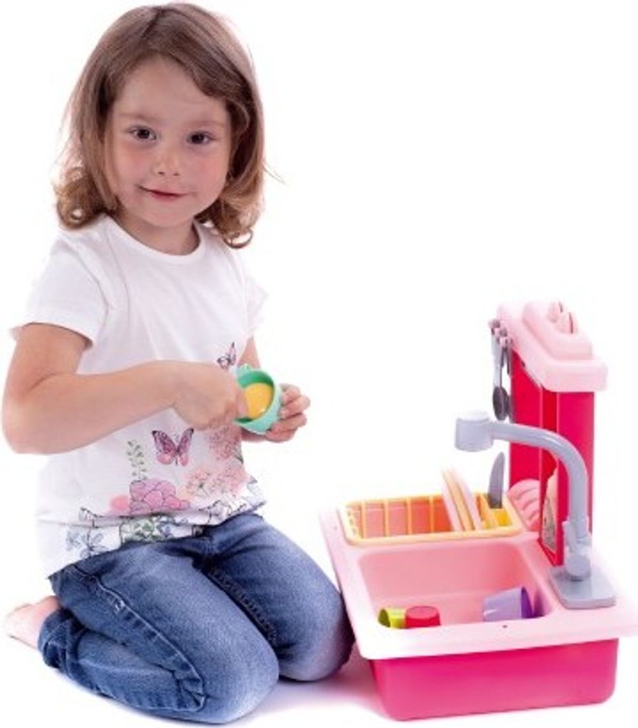 Naplňte dřez vodou a sledujte, jak se z mytí nádobí stane zábava. Dřez s funkčním kohoutkem, nádržkou na vodu, odnímatelným odkapávačem a doplňky, které musí být v každé kuchyňce. Vyrobeno z kvalitního plastu. Baterie 2x AA nejsou součástí balení.