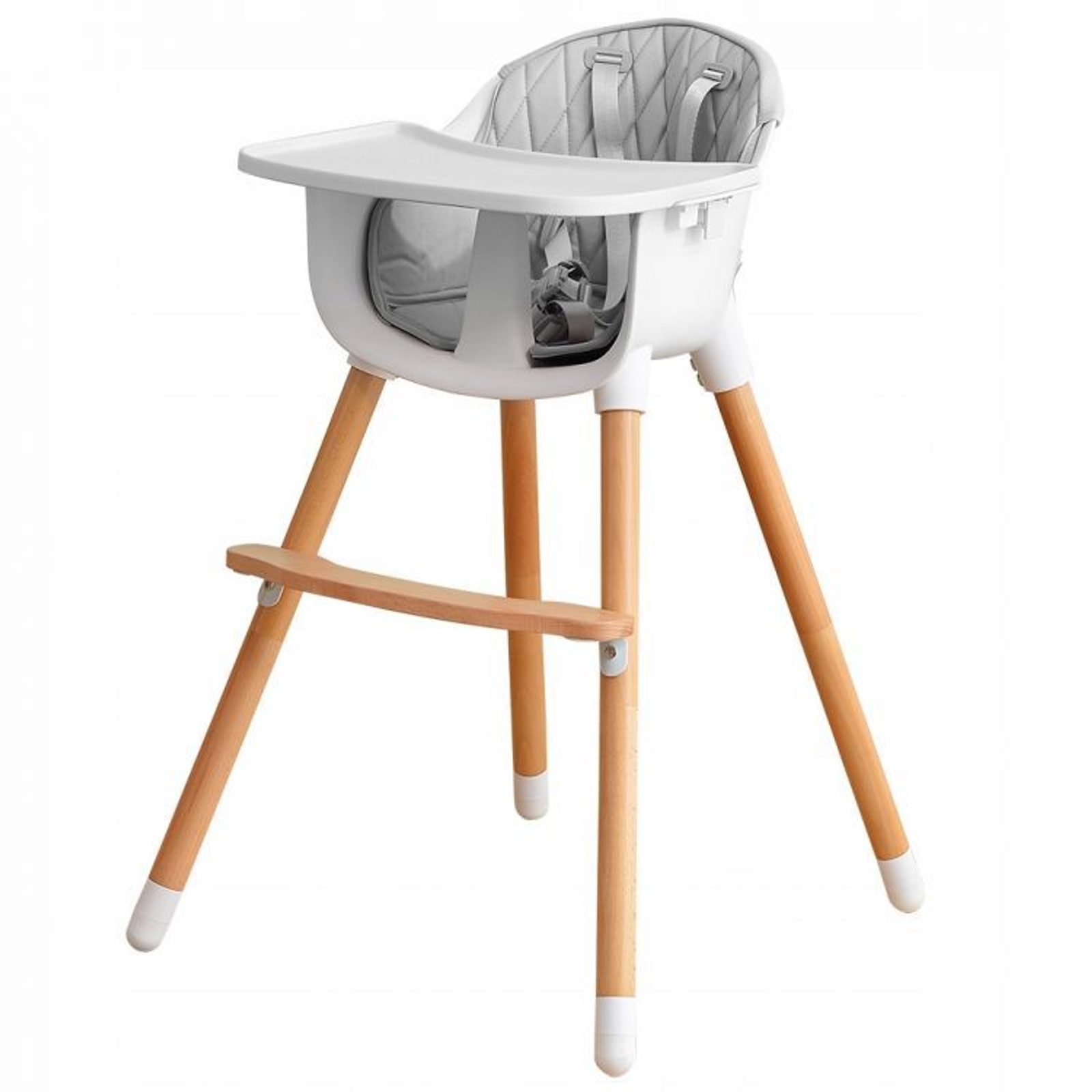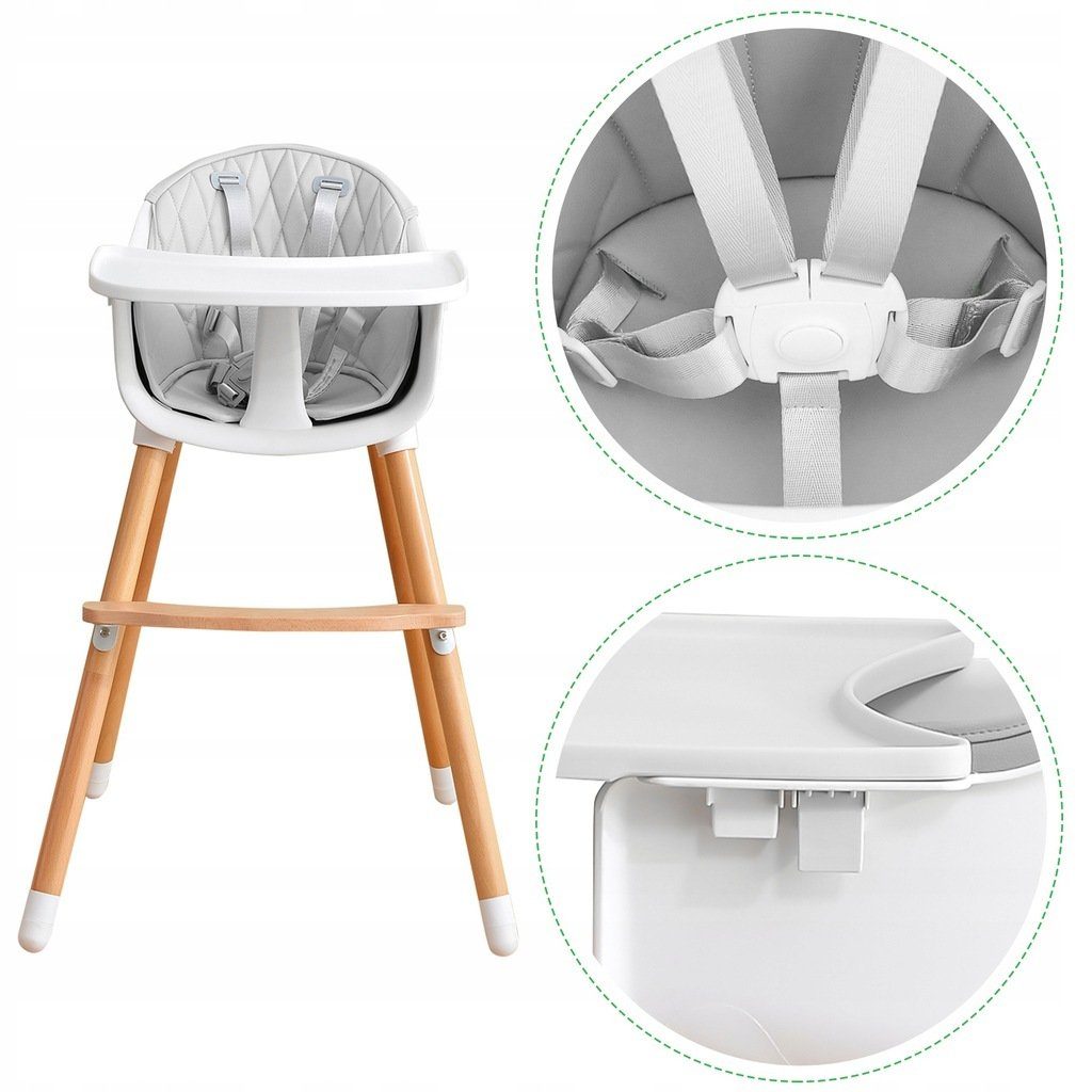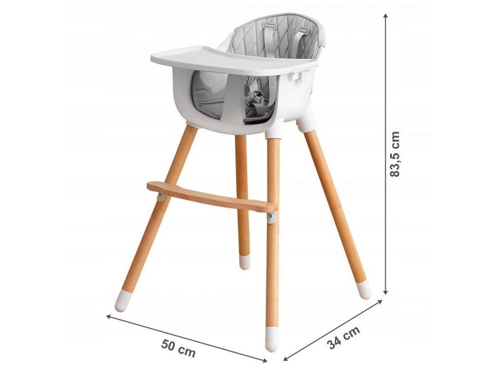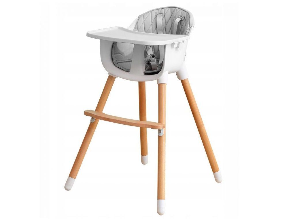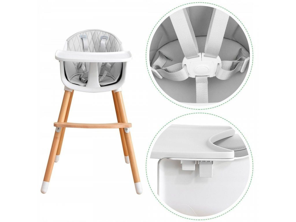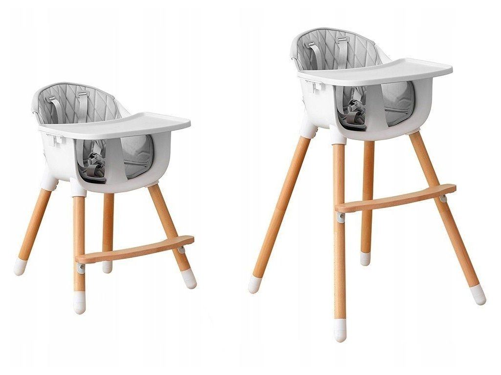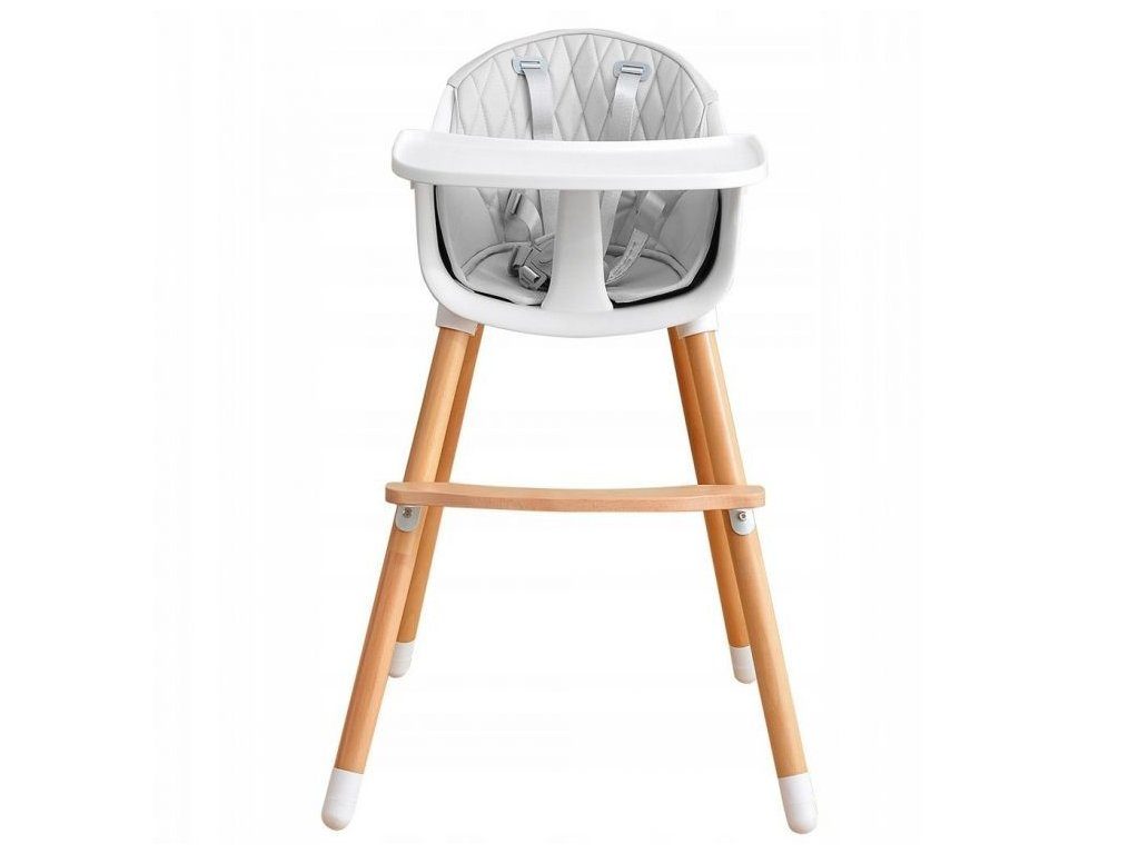 Jídelní židlička se stolečkem Ecotoys 2v1. Jednoduchým způsobem ji lze měnit buď ve vysokou nebo nízkou jídelní židličku. Pro větší pohodlí dítě je zde dřevěná podnožka. Jídelní tác má zvýšené okraje, lze ho odejmout a nastavit ve dvou polohách. Praktické polstrování je vyrobeno s nesavého materiálu, lze ho snadno udržovat, čistit a prát v pračce. Na ochranu dítěte před vypadnutím je židlička vybavena 5 bodovými bezpečnostními pásy. Na koncích dřevěných noh jsou koncovky s protiskluzovou úpravou.