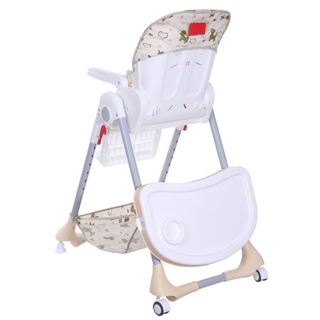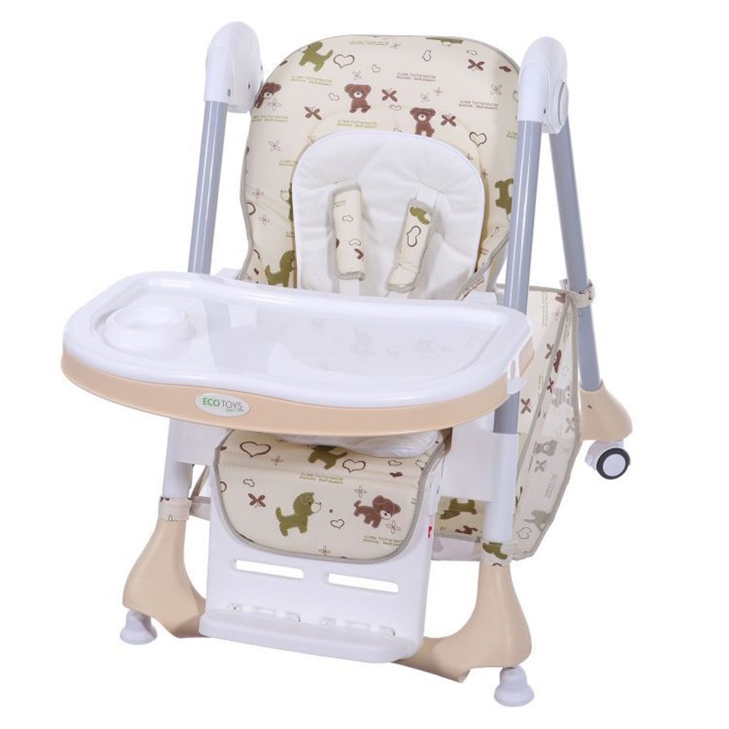 Jídelní židlička se stolečkem Ecotoys 2v1. Odnímatelný jídelní tác je dvojitý a má úchyt na hrneček. Praktické polstrování je vyrobeno s nesavého materiálu,lze ho snadno udržovat, čistit a prát v pračce. Na ochranu dítěte před vypadnutím je židlička vybavena 5 bodovými bezpečnostními pásy. Výšku lze nastavit v 7 stupních, opěradlo ve třech stupních. Pro snadné přemísťovaní židličky slouží brzdy a 2 kolečka na zadních nohách. Ve spodní části je umístěn praktický košík na hračky. Židličku lza velmi jednoduše složit.