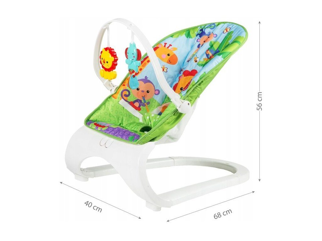 Ecotoys kojenecké lehátko 3v1 Animal 6. Dítě v něm může bezpečně odpočívat, spát a hrát si od prvních měsíců života. Potah je z měkkého a na dotek příjemného materiálu který lze prát v pračce. Díky elektronickému modulu lehátko vibruje a zklidňuje Vaše dítě. Nastavitelné bezpečnostní pásy zaručují pohodlí a udržují dítě ve správné poloze. Lehátko lze jednoduše složit, takže když ho nebudete používat nezabere téměř žádné místo. Pohon je velmi tichý proto nebude dítě vyrušovat ve spánku. Celkem 6 uklidňujících melodií s regulací hlasitosti.
