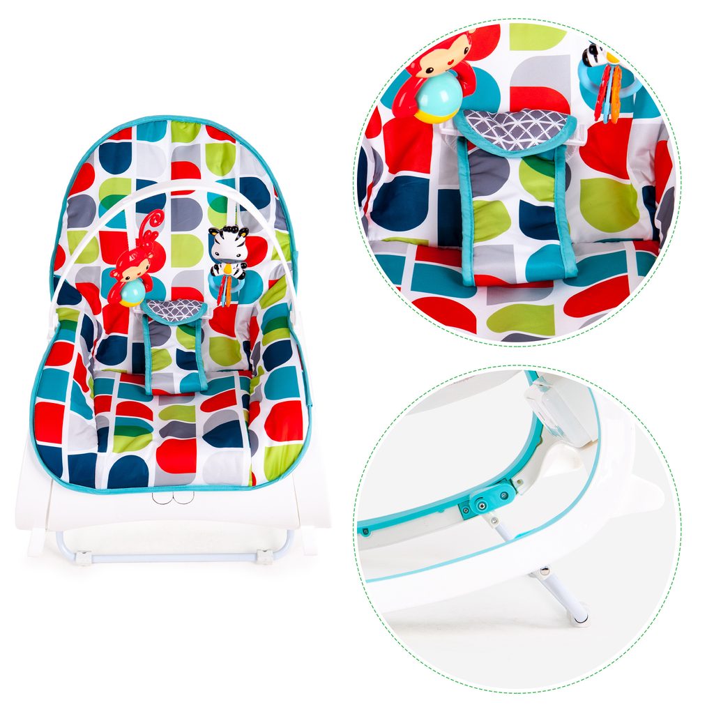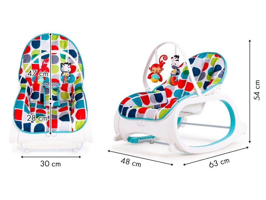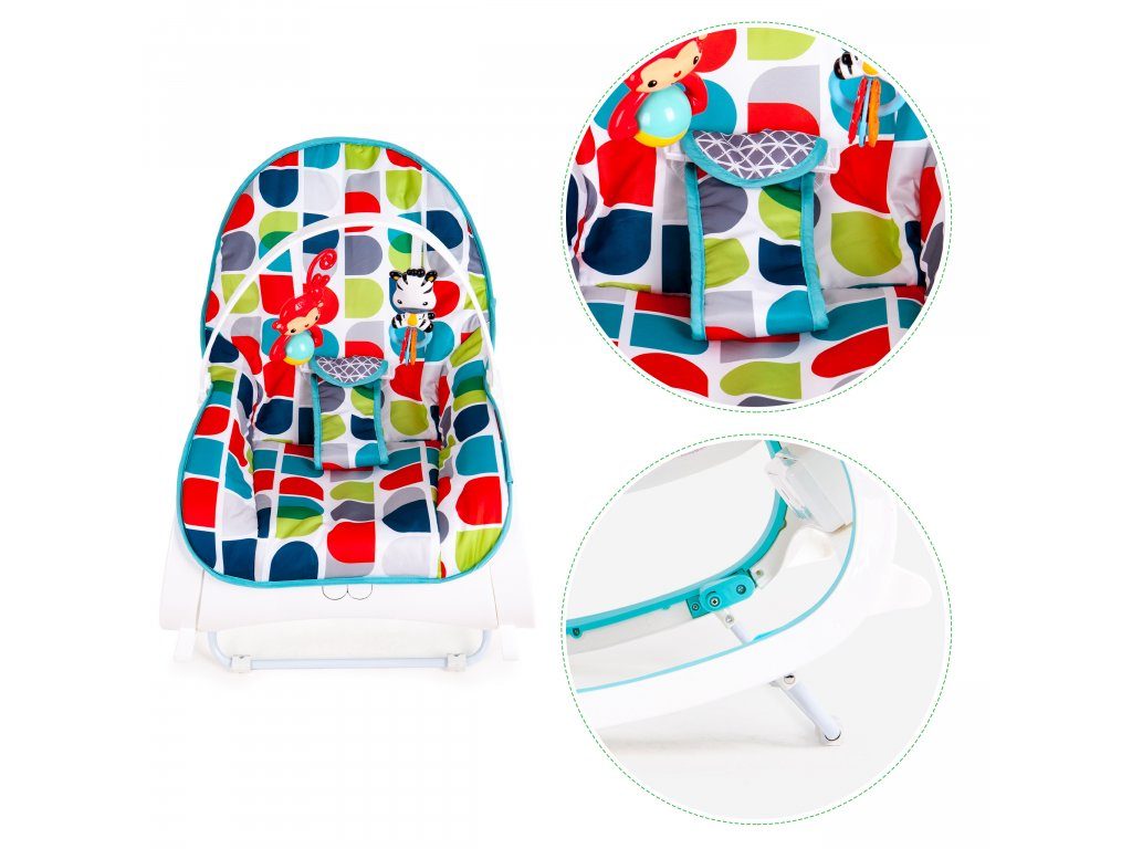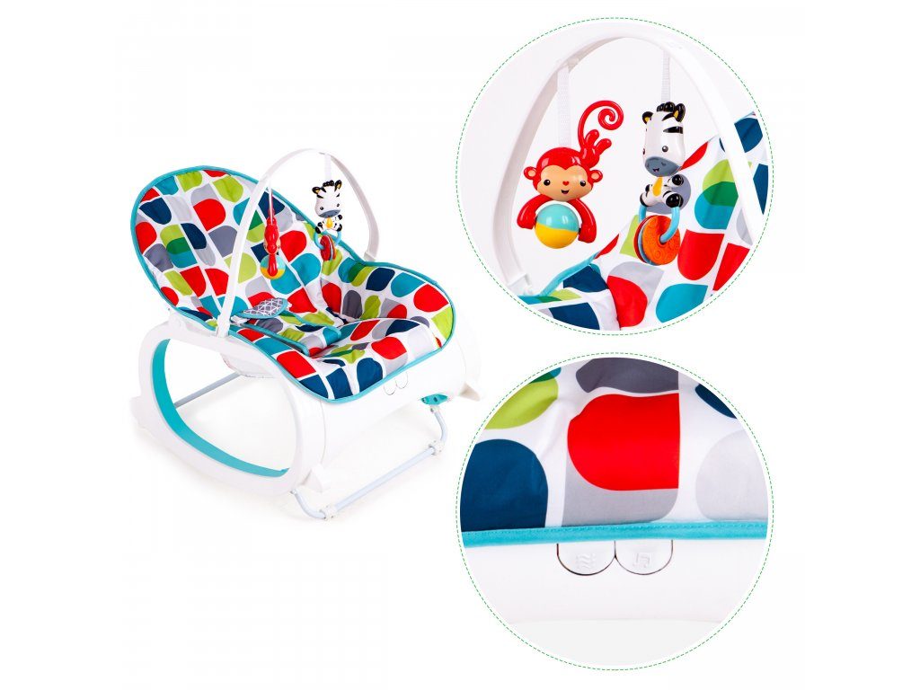 Ecotoys Animal 10 kojenecké lehátko 3v1. Dítě v něm může bezpečně odpočívat, spát a hrát si od prvních měsíců života. Potah je z měkkého a na dotek příjemného materiálu který lze prát v pračce. Díky elektronickému modulu lehátko vibruje a zklidňuje Vaše dítě. Nastavitelné tříbodové bezpečnostní pásy zaručují pohodlí a udržují dítě ve správné poloze. Pohon je velmi tichý proto nebude dítě vyrušovat ve spánku. Hradička se 2 zavěšenými hračkami a modul, který vydává 68 různých melodií. Lehátko je vybaveno nastavitelnými bezpečnostními pásy a systémem proti převrácení.