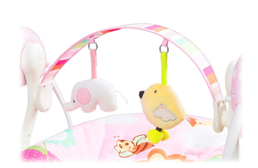 Houpačka, díky které může dítě odpočívat, houpat se a hrát bezpečně od prvních měsíců života. To Vám umožní uklidnit dítě příjemným způsobem. Lehátko má měkkou příjemnou matraci a 2 plyšové hračky.