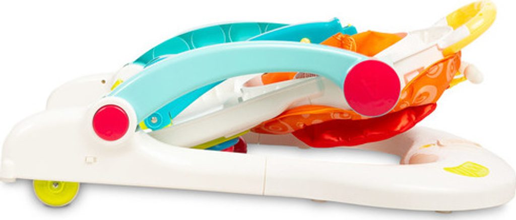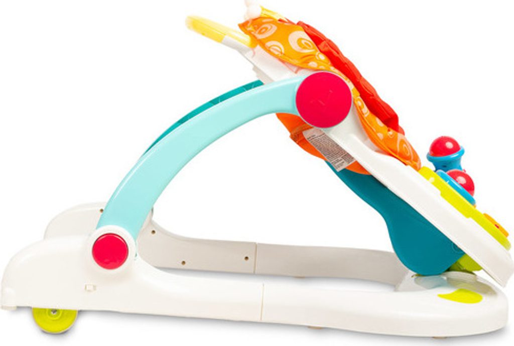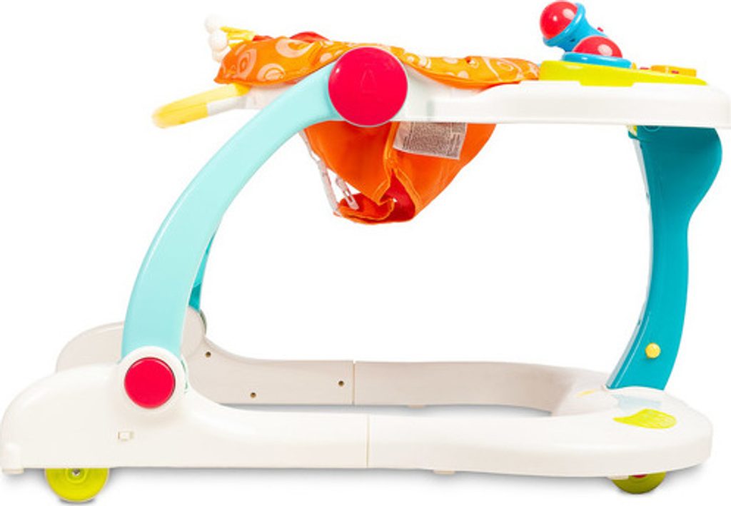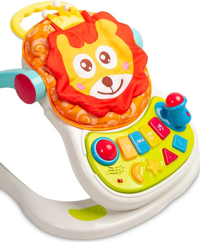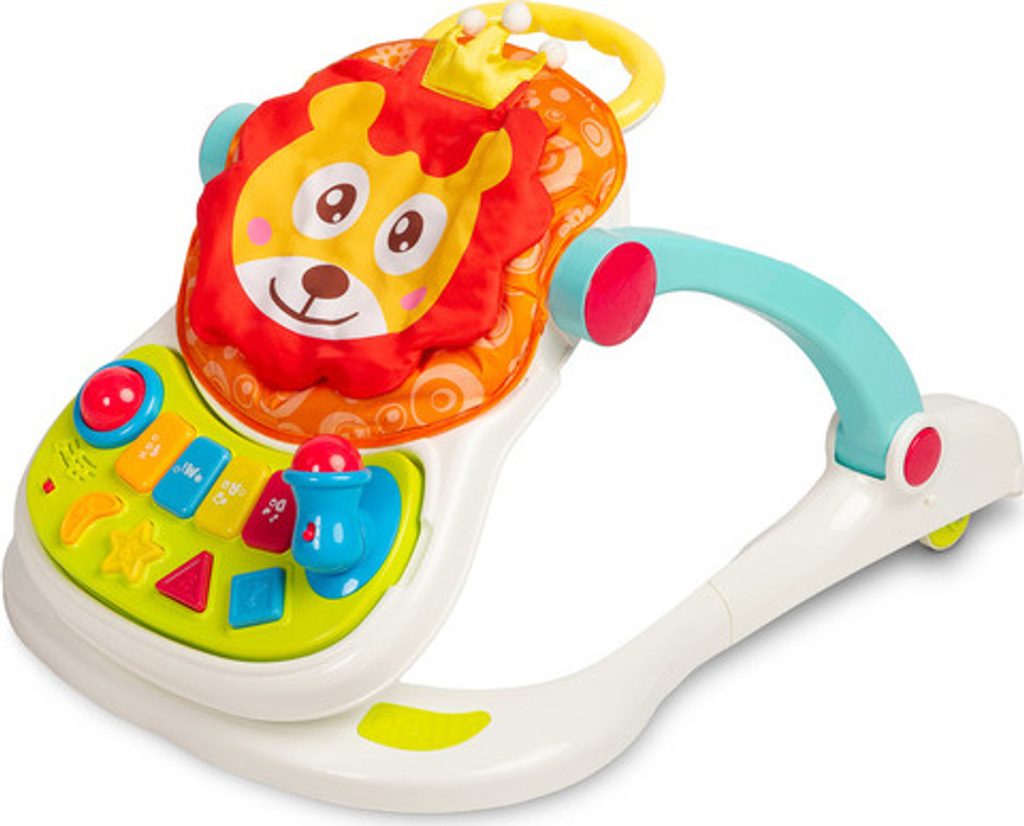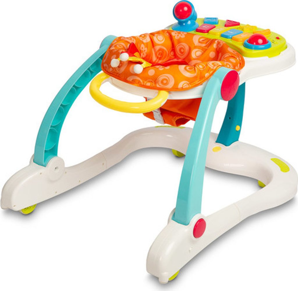 Multifunkční chodítko Toyz je všestranné zařízení, které kombinuje až čtyři funkce. Lze jej používat jako chodítko, odrážedlo, nízkou židličku na krmení a hrací centrum, kde může dítě sedět. Chodítko je vybaveno uzamykatelnými gumovými kolečky, která usnadňují pohyb a nepoškrábou podlahu. Výšku sedátka lze nastavit pomocí zapínání na přezky tak, aby vyhovovala potřebám dítěte. Tvarovaná rukojeť připevněná k zadní části usnadňuje držení a nácvik chůze. Na přední straně chodítka je interaktivní panel, který podporuje rozvoj smyslů. Chodítko je napájeno bateriemi (3xAA). Má mikrofon, barevná svítící tlačítka, která vydávají zvuky, a dvoustupňové ovládání hlasitosti. Panel lze snadno odejmout a odhalit tak plochu pro krmení dítěte.