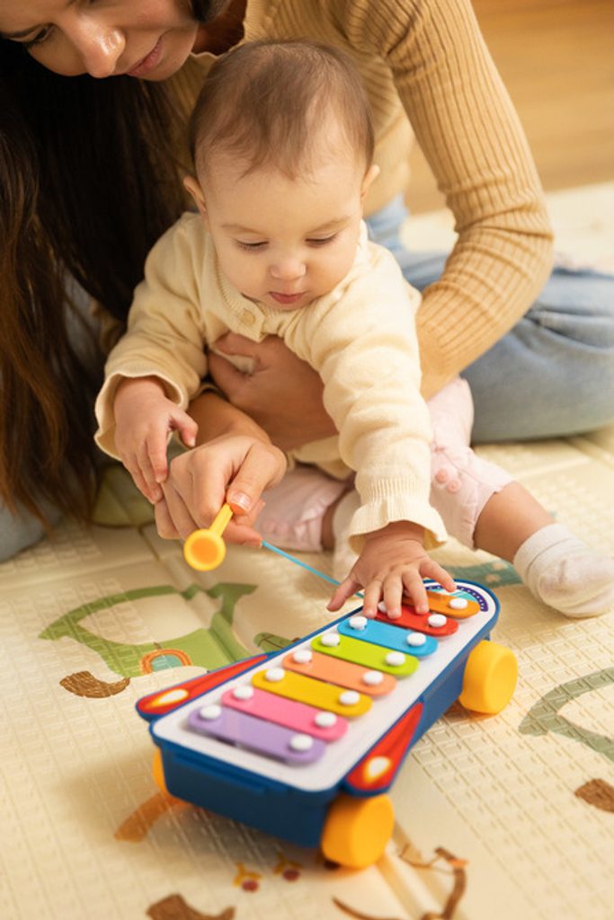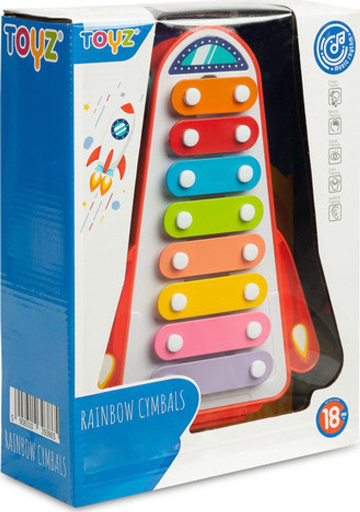 Duhové činely od TOYZ je barevná vzdělávací hračka, která uvede vaše batole do světa hudby. Činely jsou zespodu opatřeny kolečky, díky čemuž hračka poslouží i jako závodní auto. Hůl připevněná k činelům je připevněna k provázku, takže se neztratí. Hračka je vhodná pro děti starší 18 měsíců. Činely jsou dostupné ve 2 barevných variantách zasílaných náhodně.