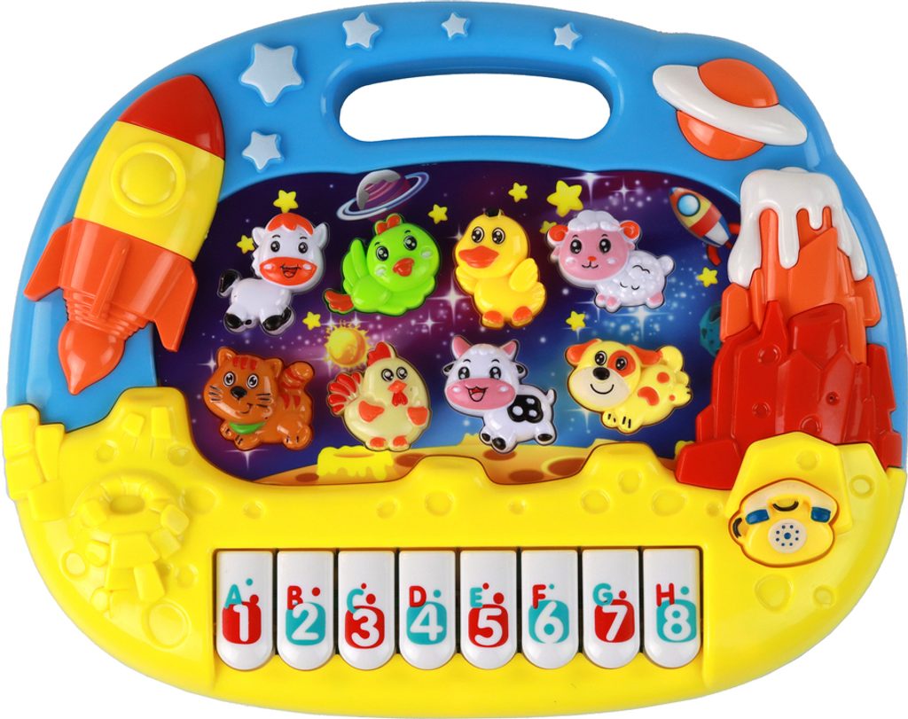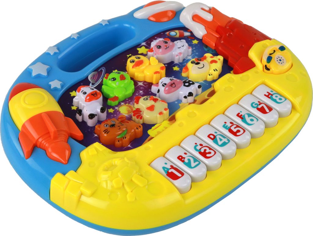 Vesmírné téma dodává tomuto klavíru další rozměr a rozvíjí fantazii vašeho nejmenšího. Klávesy jsou spojeny s písmeny, čísly a zvuky zvířat. Díky tomu může dítě při mačkání jednotlivých kláves nejen slyšet názvy písmen a číslic, ale také si užívat zvuky zvířátek, což dodává prvek zábavy a zvědavosti.
