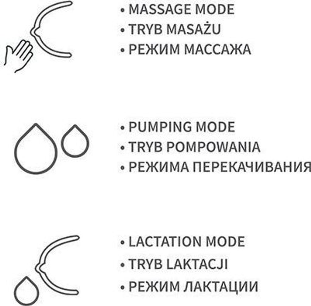 3.Režim laktace -V tomto režimu odsávačka provádí intenzivní mělké pohyby, stimuluje laktaci a stimuluje mléčné žlázy v prsou k produkci a výdeji mléka.