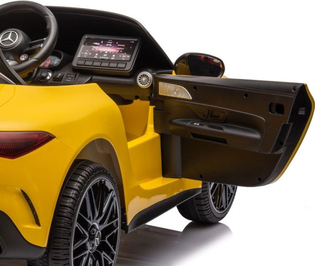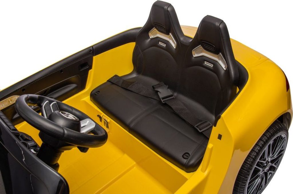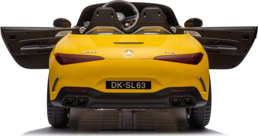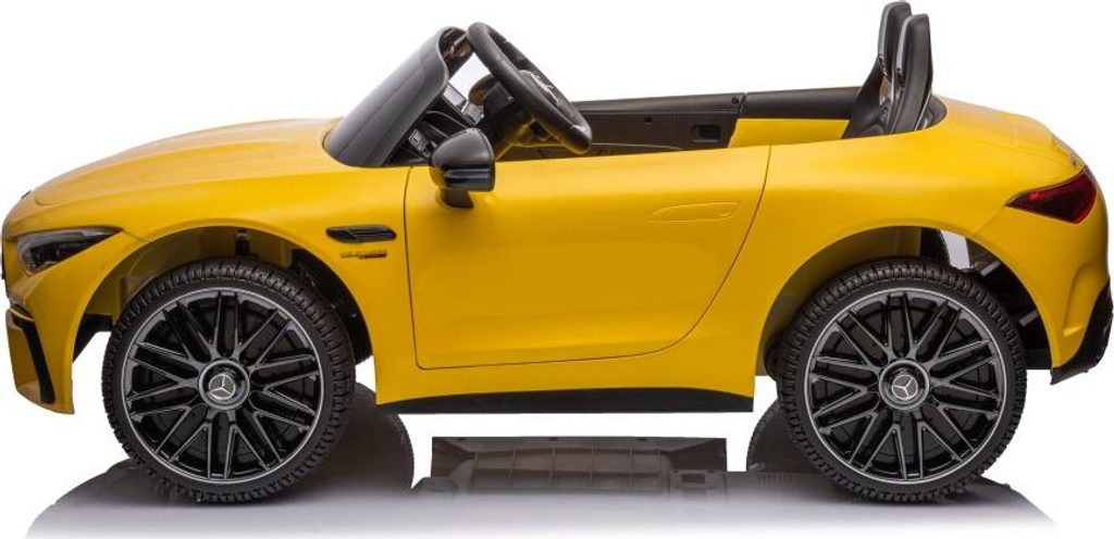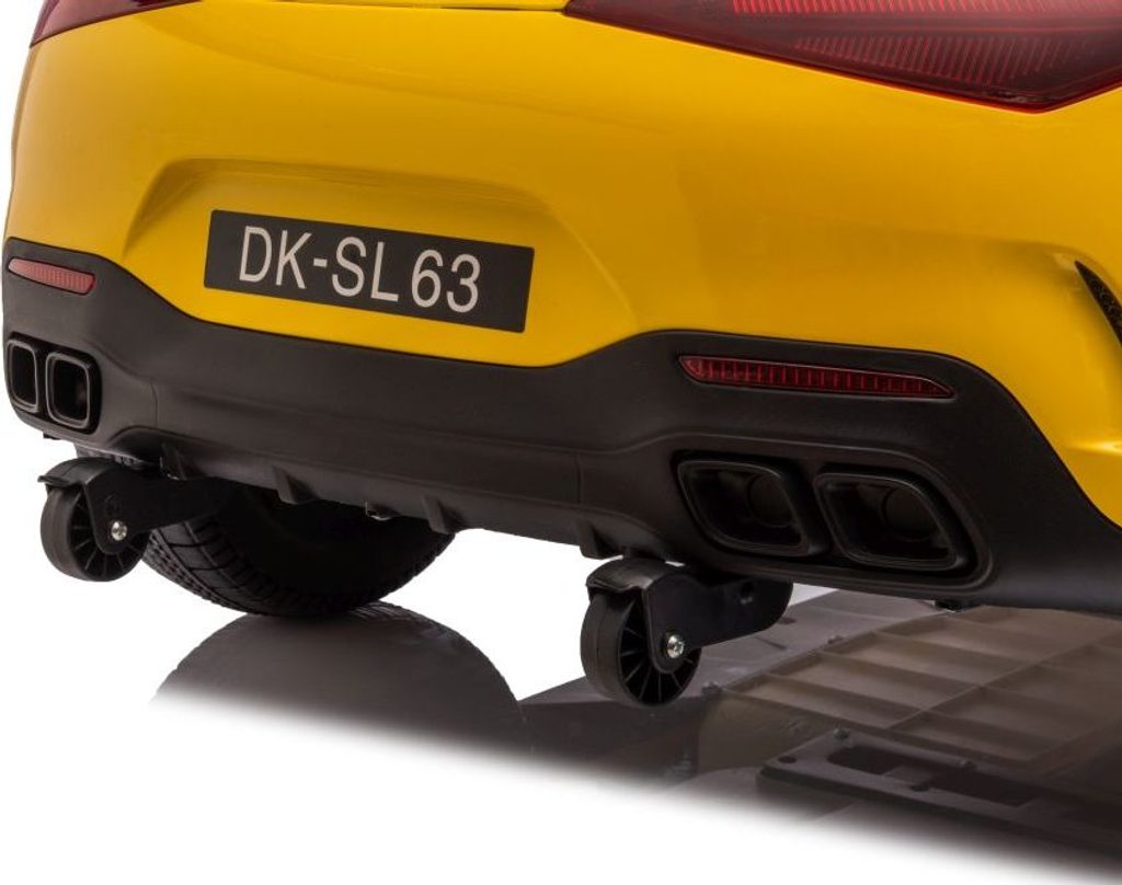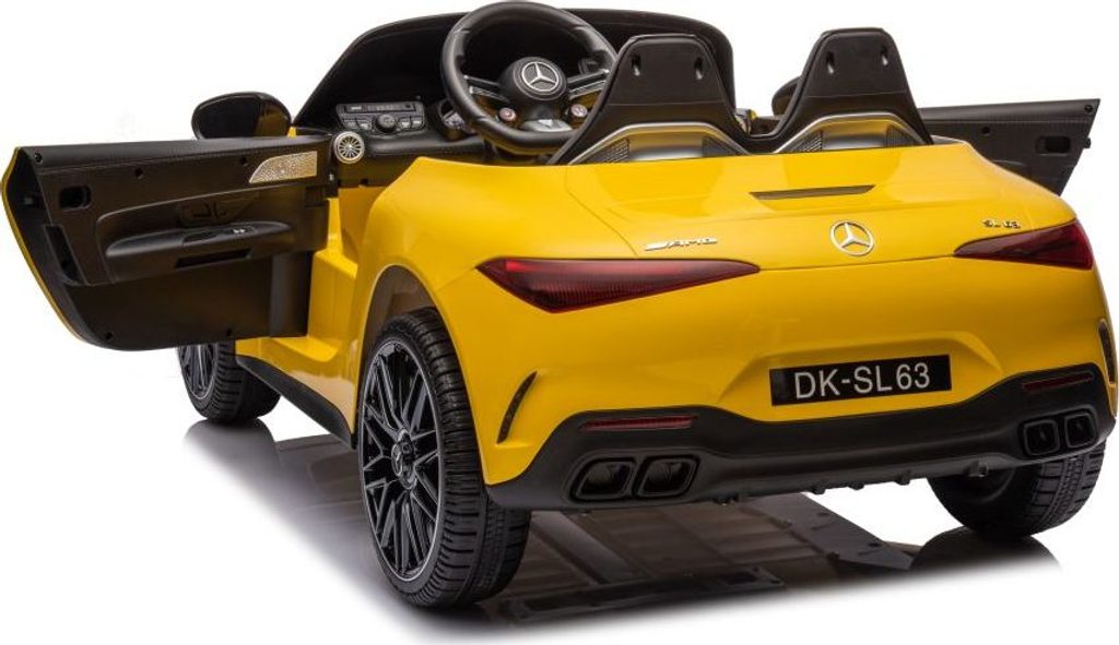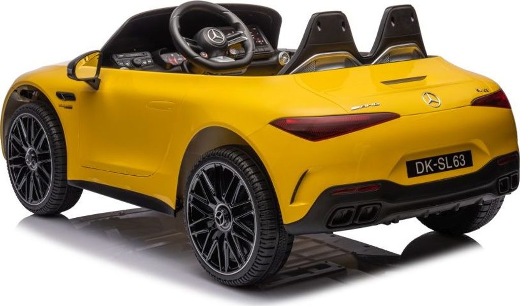 Dětské licencované autíčko Mercedes AMG SL63 přijíždí na měkkých pěnových EVA kolech, která jsou tichá a přizpůsobí se různým typům terénu. Dítě se posadí do pohodlně tvarované sedačky z ekologické kůže a o bezpečnost se postarají bezpečnostní pásy.