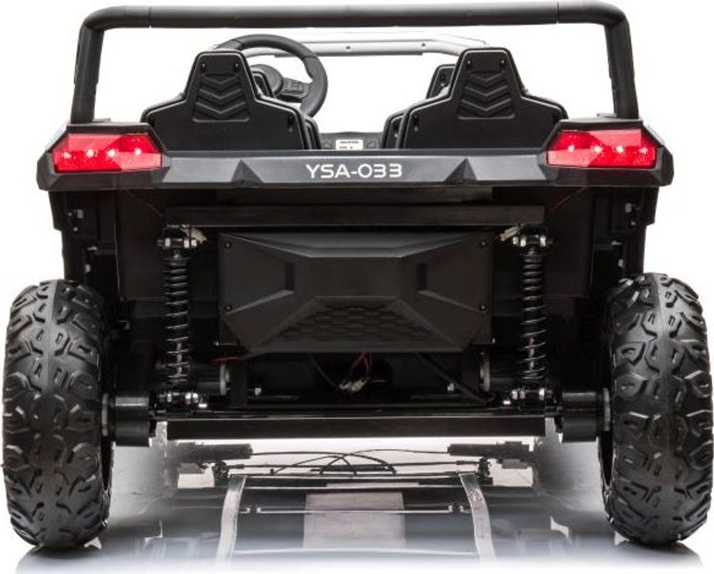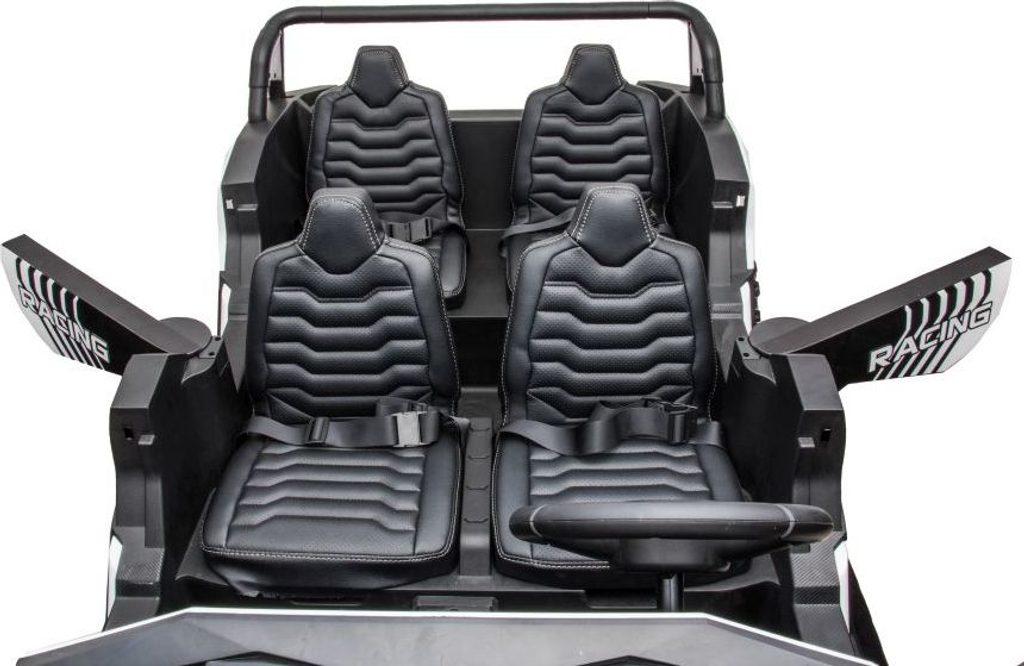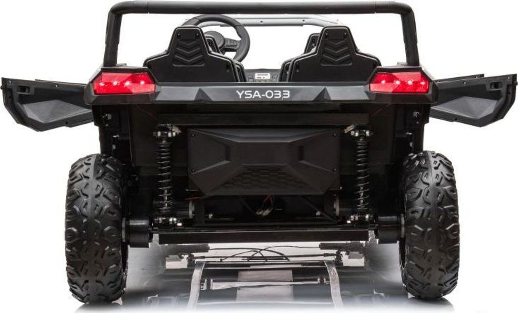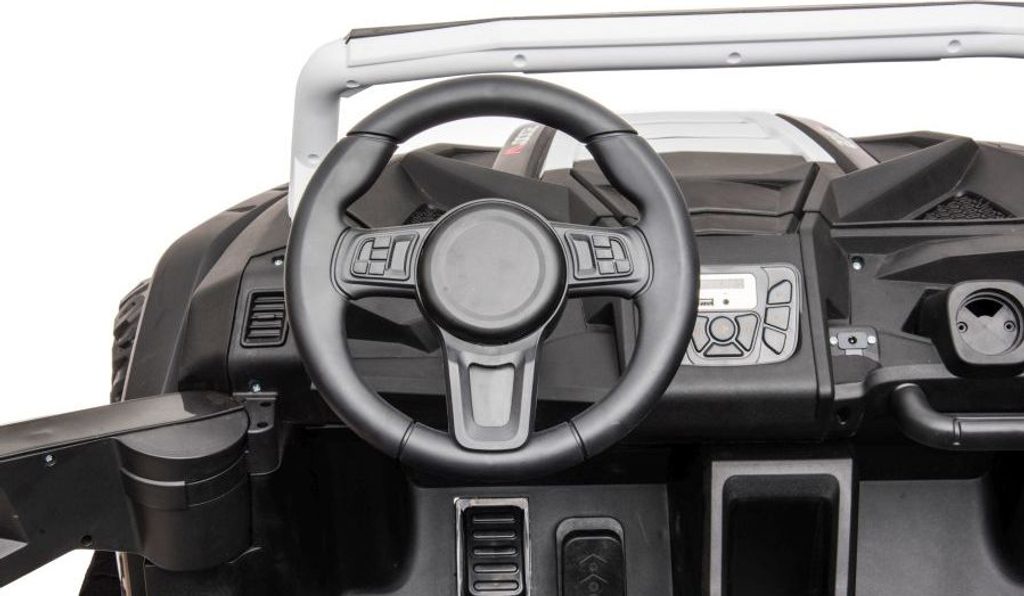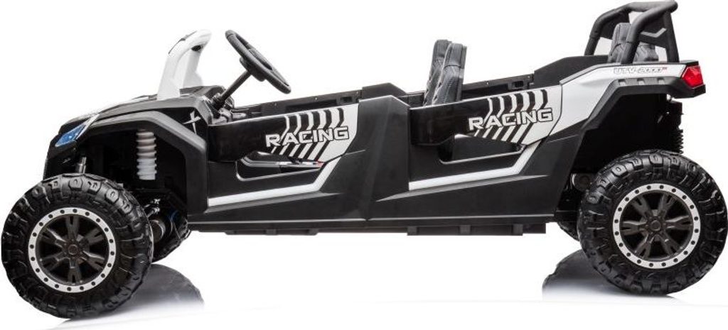Auto má čtyři motory s výkonem 150W, to znamená, že auto má pohon 4x4.