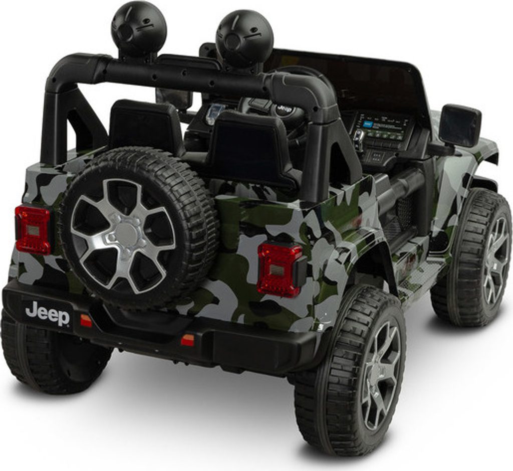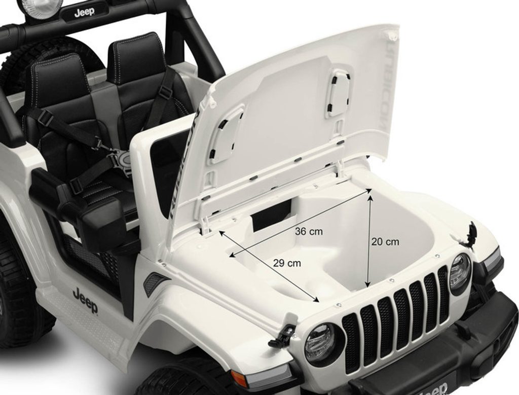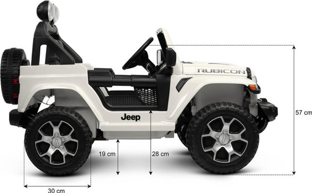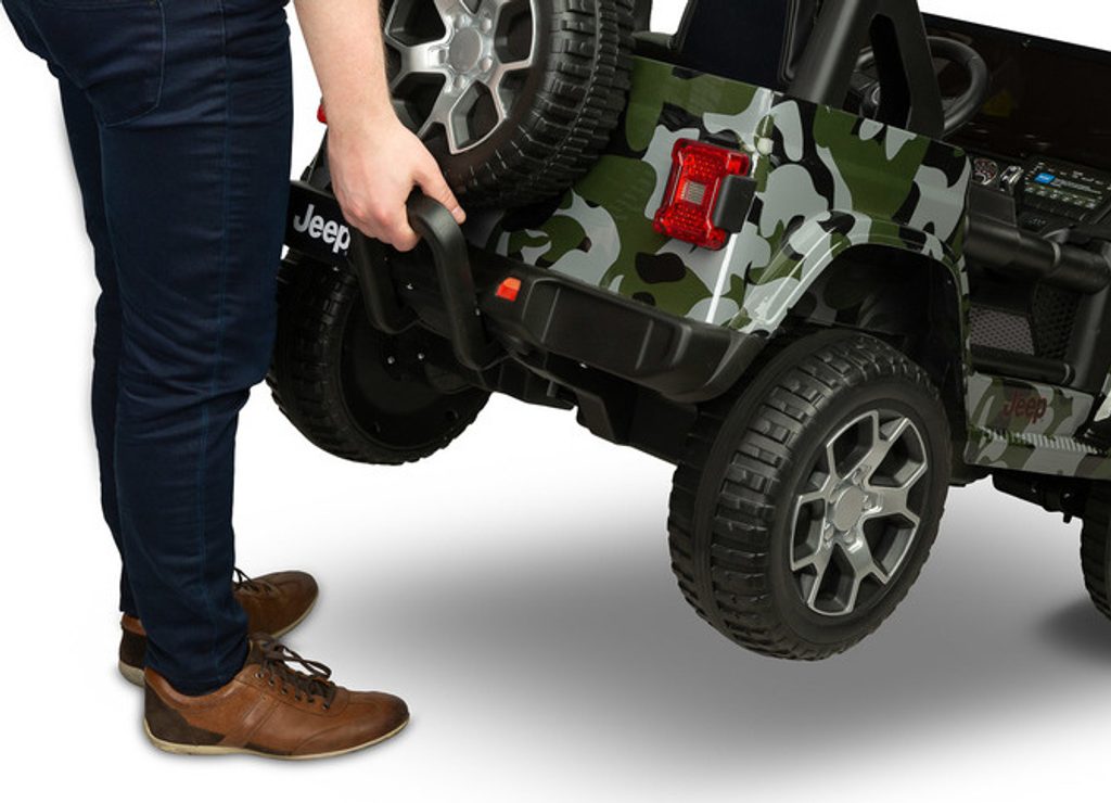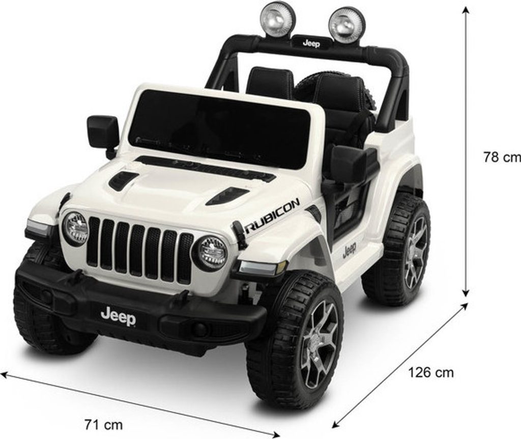 Jeep Rubicon je bateriové vozidlo, které je licencovanou verzí známého off-roadu. Věrná reprodukce vzhledu Jeepu potěší malé řidiče i rodiče. Komfort jízdy zajišťuje tlumení nárazů zadní nápravy a sedadlo s čalouněním z ekokůže. Snazší jízdu v terénu zaručují 4 motory pohánějící 30centimetrová kola z EVA pěny. Další výhodou jsou LED světla umístěná vpředu a na příčce vozidla.
