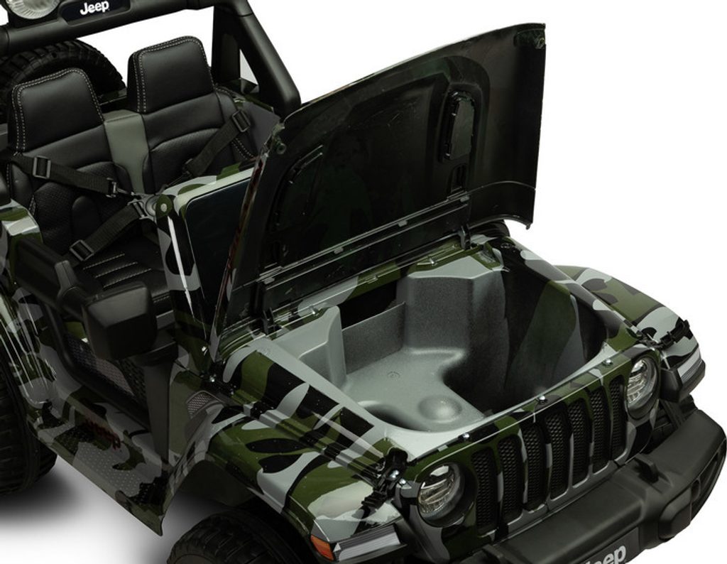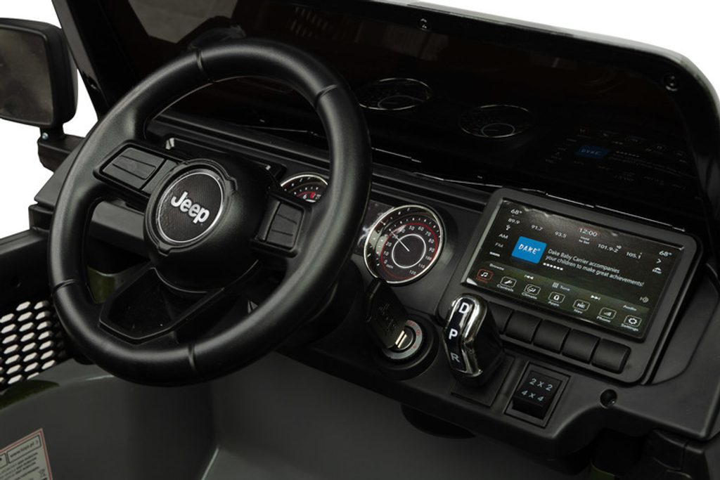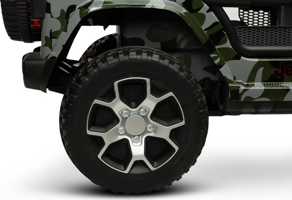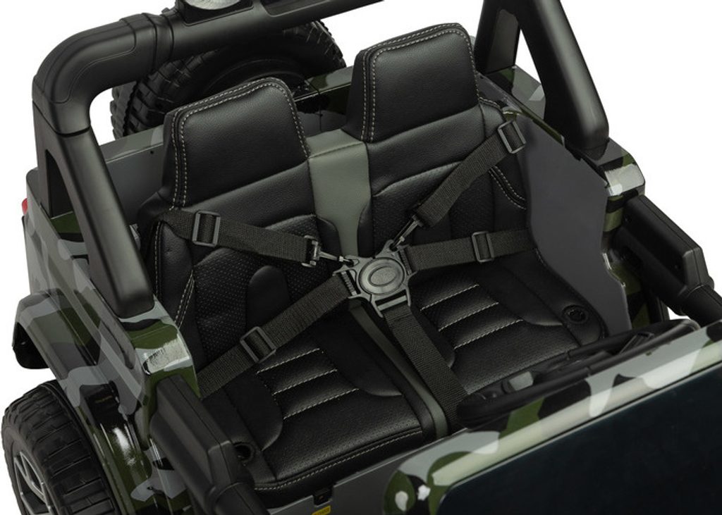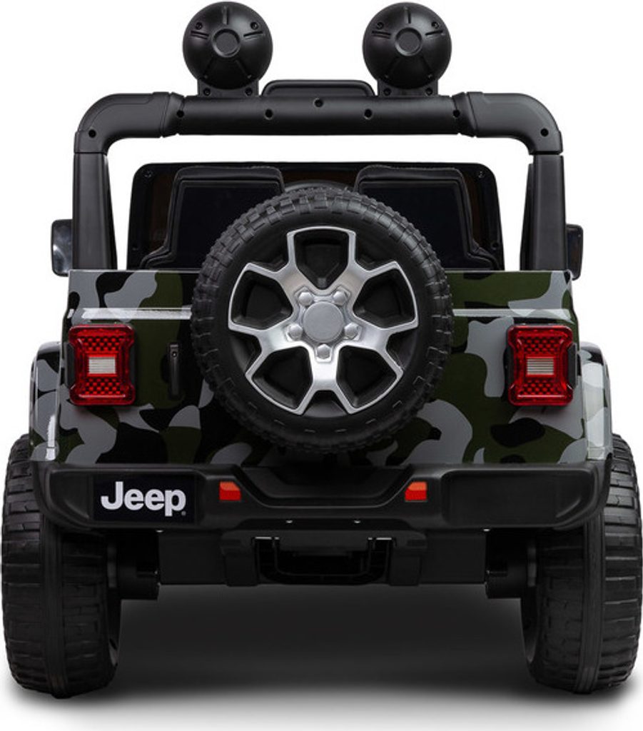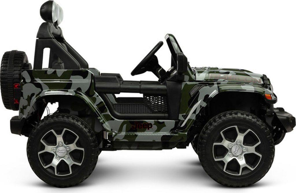 Jeep Rubicon je bateriové vozidlo, které je licencovanou verzí známého off-roadu. Věrná reprodukce vzhledu Jeepu potěší malé řidiče i rodiče. Komfort jízdy zajišťuje tlumení nárazů zadní nápravy a sedadlo s čalouněním z ekokůže. Snazší jízdu v terénu zaručují 4 motory pohánějící 30centimetrová kola z EVA pěny. Další výhodou jsou LED světla umístěná vpředu a na příčce vozidla.