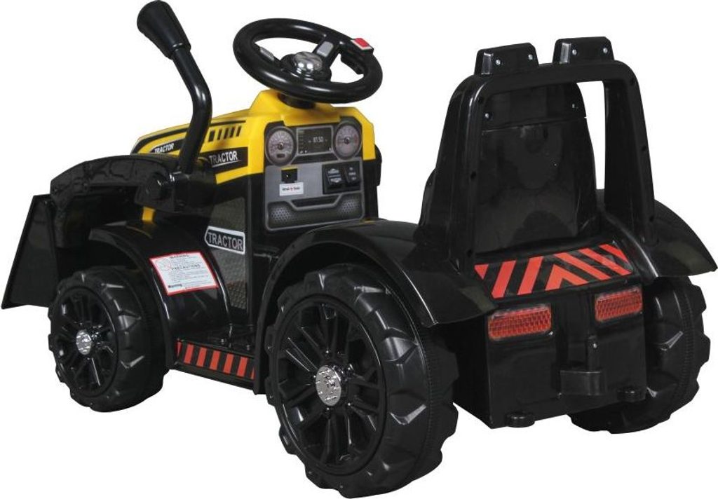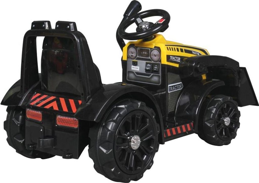 Dětský elektrický traktor se díky své konstrukci a mohutným kolům přizpůsobí nejen zpevněnému terénu, ale také náročnému venkovnímu terénu.