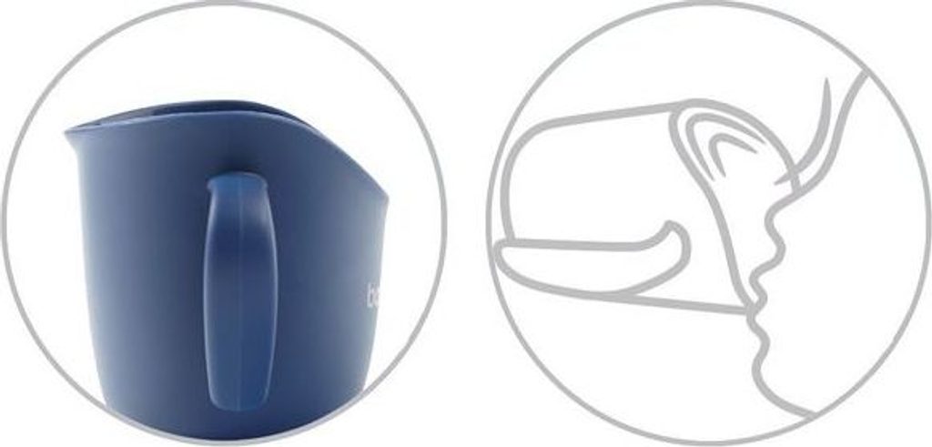 Nízká hmotnost poháru usnadňuje koordinaci pohybů. Můžete z ní pít v pololeže. Praktické rukojeti vám umožňují plnou kontrolu při naklápění a dávkování nápoje. Zahnutý okraj umožňuje dítěti lépe vidět obsah hrnku.