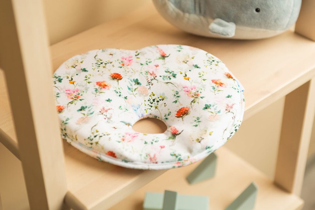 Ergonomický polštář, který podporuje správné tvarování hlavičky dítěte Díky speciálnímu tvarování a nedeformovatelné výplňové houbě snižuje bodový tlak hlavičky dítěte na zem. Pomáhá hlavě vašeho dítěte získat přirozený kulatý tvar. Vyrobeno z barevné látky příjemné na dotek.