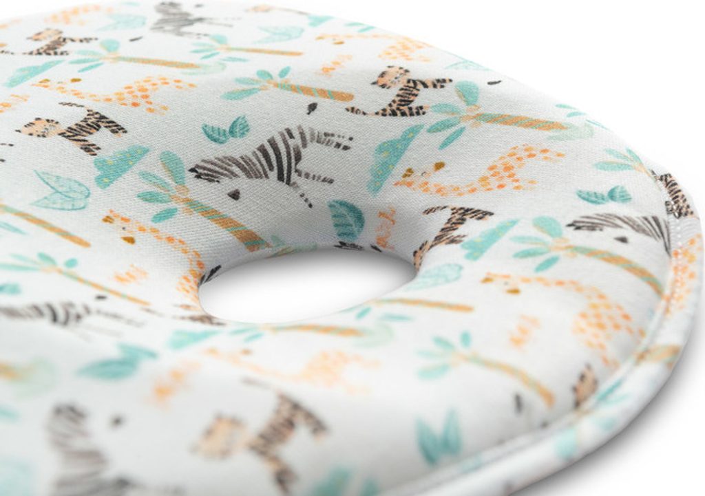 Ergonomický polštář, který podporuje správné tvarování hlavičky dítěte Díky speciálnímu tvarování a nedeformovatelné výplňové houbě snižuje bodový tlak hlavičky dítěte na zem. Pomáhá hlavě vašeho dítěte získat přirozený kulatý tvar. Vyrobeno z barevné látky příjemné na dotek.