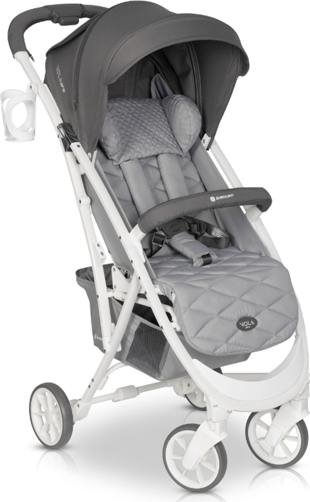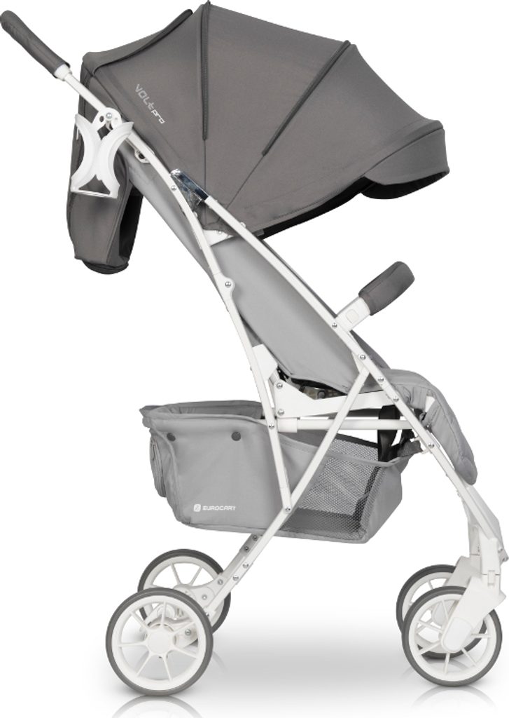 Nejnovější sportovní kočárek Euro-Cart VOLT PRO má nová kola, která se ještě snadněji zatáčejí a jejich pláště jsou vyrobeny ze směsi materiálů, které zajišťují větší odolnost proti oděru. Delikátní změny střihu čalounění zahrnovaly nákupní košík a zadní kapsu s ventilačním panelem. VOLT PRO je certifikován v souladu s bezpečnostními normami EN 1888-1: 2018 a EN 1888-2: 2018, což znamená, že se jedná o kočárek určený pro děti od narození až do hmotnosti 22 kg. Navíc je povoleno zatížit košík pod vozík až 3 kg, což znamená, že celkové maximální zatížení vozíku je celých 25 kg. Co dělá VOLT PRO jedním z nejoblíbenějších kočárků v Polsku již více než 3 roky? Tajemství spočívá v patentovaném systému skládání, díky kterému je kočárek ve složeném stavu extrémně malý a zároveň vysoký a pohodlný v rozložení. Díky vysoko posazené budce se do kočárku vejdou i velké děti. Složený kočárek má tvar kostky, kterou snadno zabalíte do přiloženého přepravního obalu. Vejde se do většiny kufrů aut. Další výhodou je skládací systém, který se ovládá jednou rukou. Při troše cviku kočárek snadno složíte, zatímco dítě držíte volnou rukou. Důležitá je také hmotnost. VOLT PRO váží pouhých 7,6 kg. K rozsáhlé výbavě vozíku VOLT PRO patří kryt na nohy, pláštěnka s ventilačním systémem, moskytiéra, přepravní kryt, držák na láhev a praktický ramenní popruh pro přenášení složeného vozíku. Hlavní přednosti kočárku VOLT PRO: NOSNOST 25 KG - celková povolená nosnost kočárku je celých 25 kg. Skládá se z maximální hmotnosti dítěte do 22 kg a zatížení korbičky pod kočárkem do 3 kg. SEAT 0+ - sedák kočárku VOLT PRO lze použít pro děti od narození. Děti do šesti měsíců, které se nedokážou samy posadit, lze přepravovat s opěradlem vleže. O bezpečnost vašeho dítěte se postarají speciální 5-ti bodové pásy, certifikované pro děti od narození do 22 kg.
