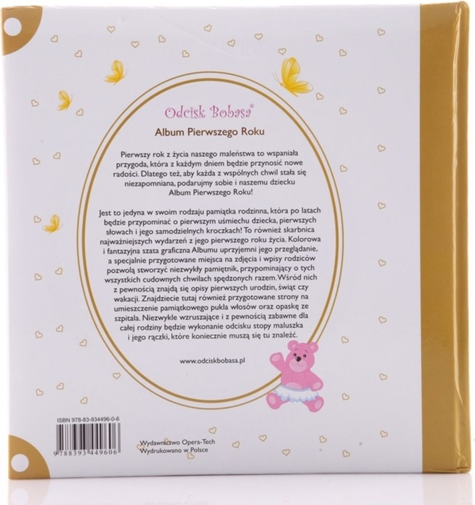 Radostné chvíle strávené společně s dítětem jsou nesmírně vzácné, ale také pomíjivé. Abychom si jich zachovali co nejvíce, nabízíme naše album First Year Album. Je to jedinečná kniha pro pamětní záznamy a fotografie. Barevné a pohádkové grafické provedení bude dokonalým pozadím pro fotografie miminka a speciálně připravená místa pro zápisy rodičů usnadní uložení nejdůležitějších a příjemných chvil strávených s dítětem. Album je připraveno dokumentovat a připomínat celý první rok jeho života. Kromě toho je v albu kam umístit pamětní pramen vlasů a kapelu z nemocnice. Album má navíc speciální místo pro otisk dětské ručičky a nožičky, který vám připomene všechny šťastné chvíle strávené s Batoletem. Album The First Year Album je jedinečná kniha, která bude jistě dojemnou památkou pro celou rodinu. Je to také skvělý dárek pro rodiče dítěte i pro něj samotného.